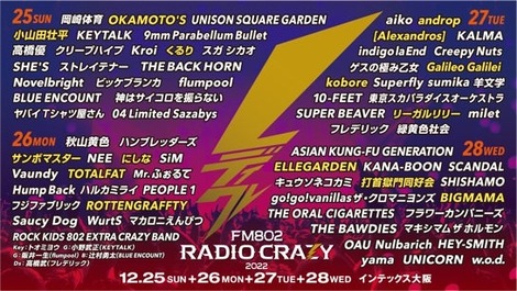 🍊FM802 RADIO CRAZY[Alexandros]、ELLEGARDEN、Galileo Galilei、サンボマスターなど全出演者を発表!