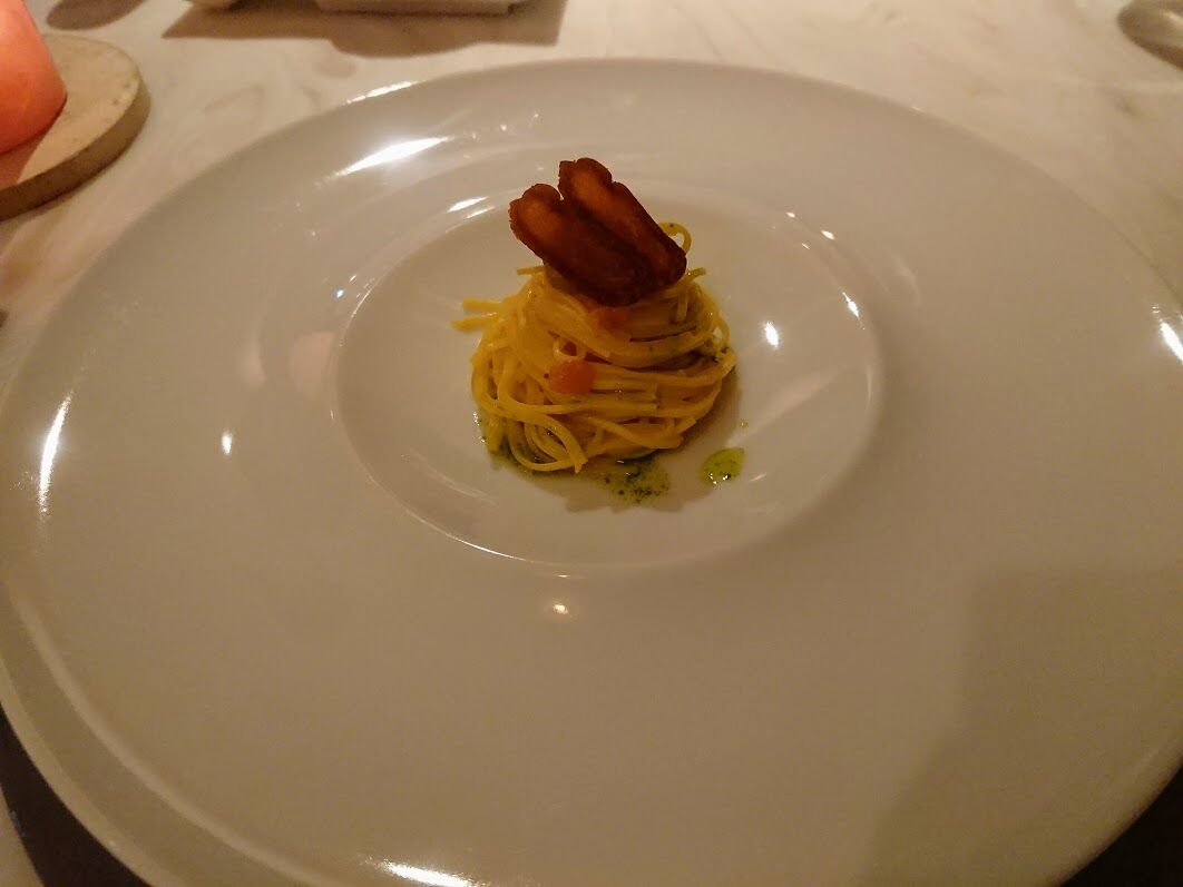 カラスミは超濃厚チーズみたいで細~い素麺のようなパスタは味が隅々まで絡んで美味しい!