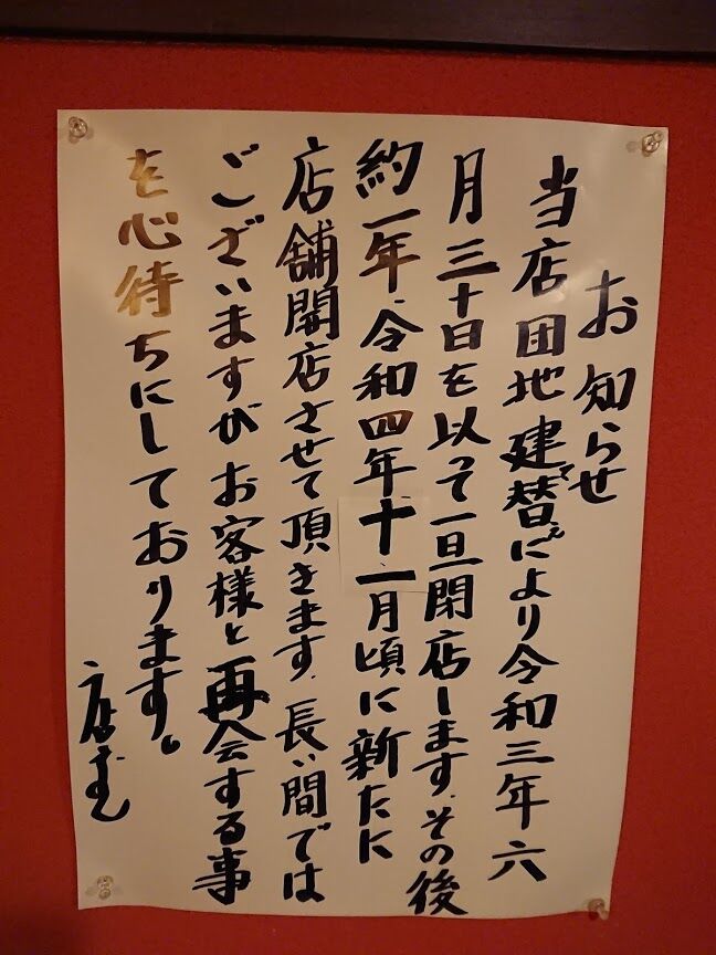 お店が入っている建物自体のリニューアルで6/30に一旦、店じまいされるそうです。