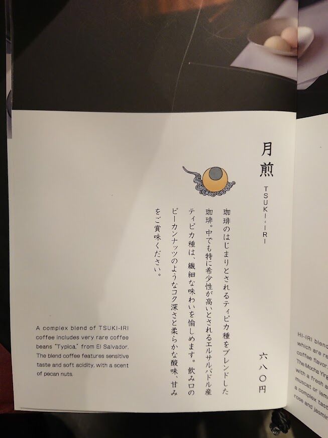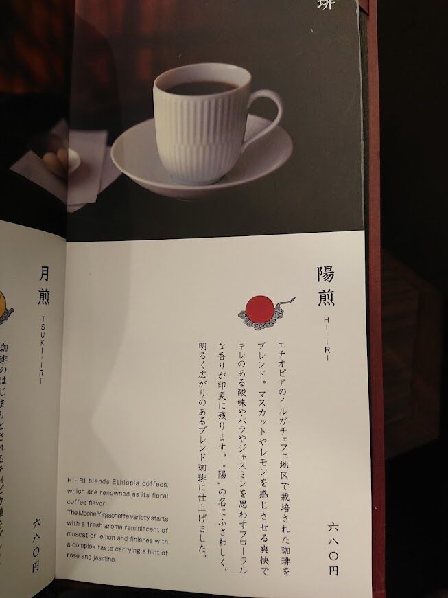 鏡のところの和の絵柄も美しいけど、コーヒーの名前にも和の要素が組み込まれていていいですね~