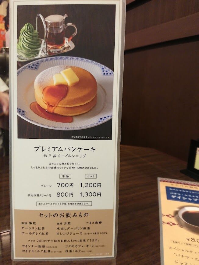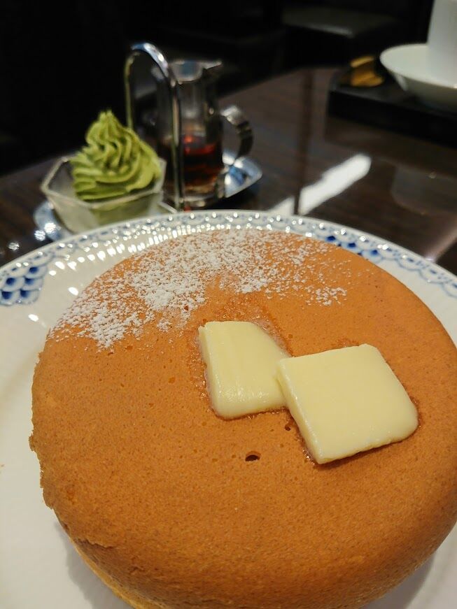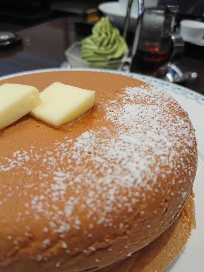 プレミアムパンケーキの宇治抹茶クリームつきにしてみました。