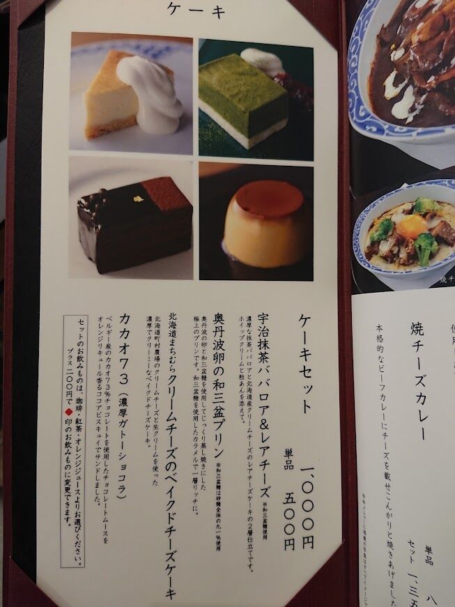 ケーキセットのメニュー