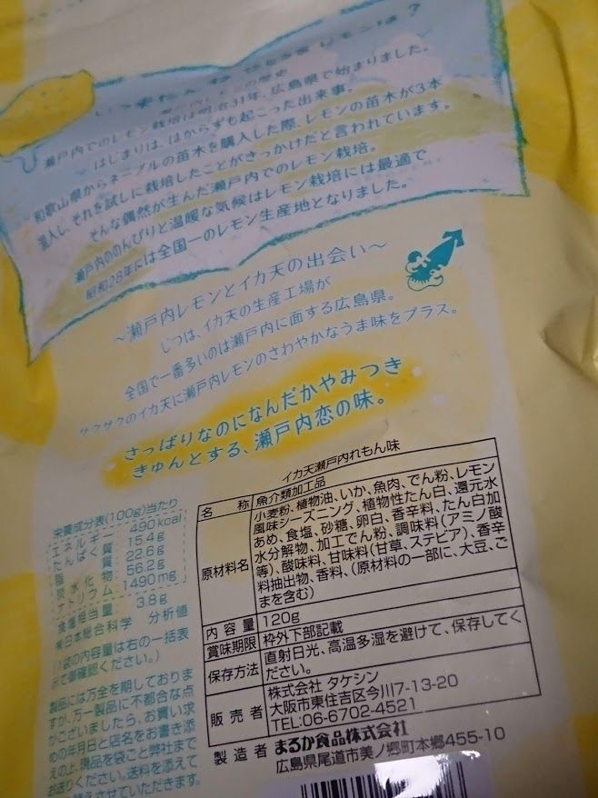 2019年05月02日 瀬戸内れもん味イカ天 これ、en食べで美味しいって書かれてたやつ~~~聞きしに勝る美味しさ!香ばしくて酸っぱくて連食性あり!一気に食べてしまいました。また買おうっと♥◆クリックしてね◆ にほんブログ村 人気ブログランキング &lt;a href="//ck.jp.ap.valuecommerce.com/servlet/referral?sid=3453735&amp;pid=885775100" target="_blank" rel="nofollow"&gt;&lt;img src="//ad.jp.ap.valuecommerce.com/servlet/gifbanner?sid=3453735&amp;pid=885775100" border="0"&gt;&lt;/a&gt; &lt;a href="//ck.jp.ap.valuecommerce.com/servlet/referral?sid=3453735&amp;pid=885775117" target="_blank" rel="nofollow"&gt;&lt;img src="//ad.jp.ap.valuecommerce.com/servlet/gifbanner?sid=3453735&amp;pid=885775117" border="0"&gt;&lt;/a&gt; &lt;a href="//ck.jp.ap.valuecommerce.com/servlet/referral?sid=3453735&amp;pid=885775118" target="_blank" rel="nofollow"&gt;&lt;img src="//ad.jp.ap.valuecommerce.com/servlet/gifbanner?sid=3453735&amp;pid=885775118" border="0"&gt;&lt;/a&gt;いか天 瀬戸内 れもん味 2袋入り(1袋85g×2)大黒屋珍味 ポストお届け品価格:598円(2019/5/2 18:02時点)感想(2件) < 前の記事次の記事 > コメント コメントフォーム 名前 コメント 記事の評価 リセット リセット 顔 星 情報を記憶 コメントを投稿する