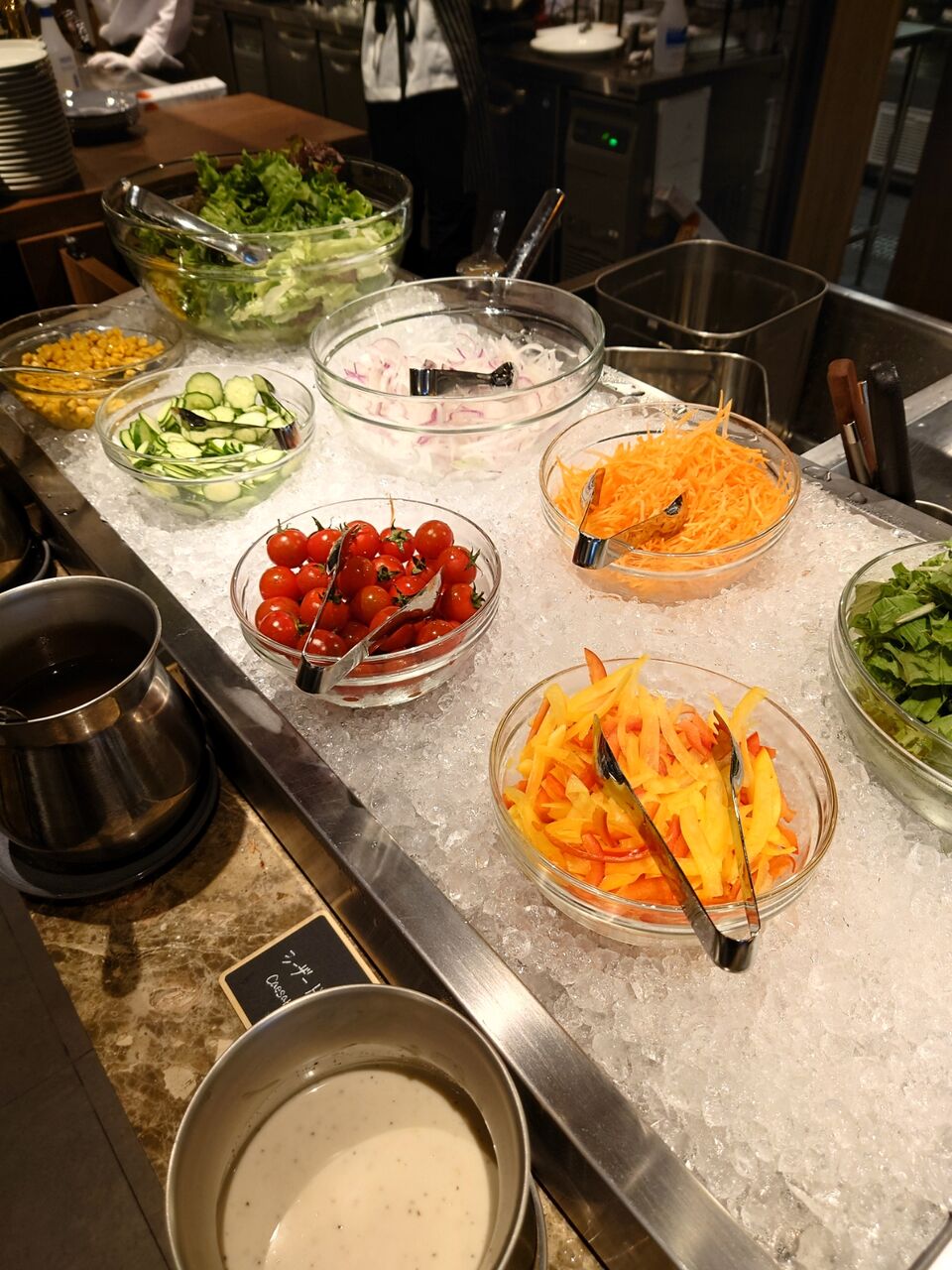 お料理もピッツァも常に補充されていて、ピッツァなんて、見るたびに違うから全部食べたくなってしまい、大変です。フードファイターの胃袋が欲しい・・と今回もまた思いました。