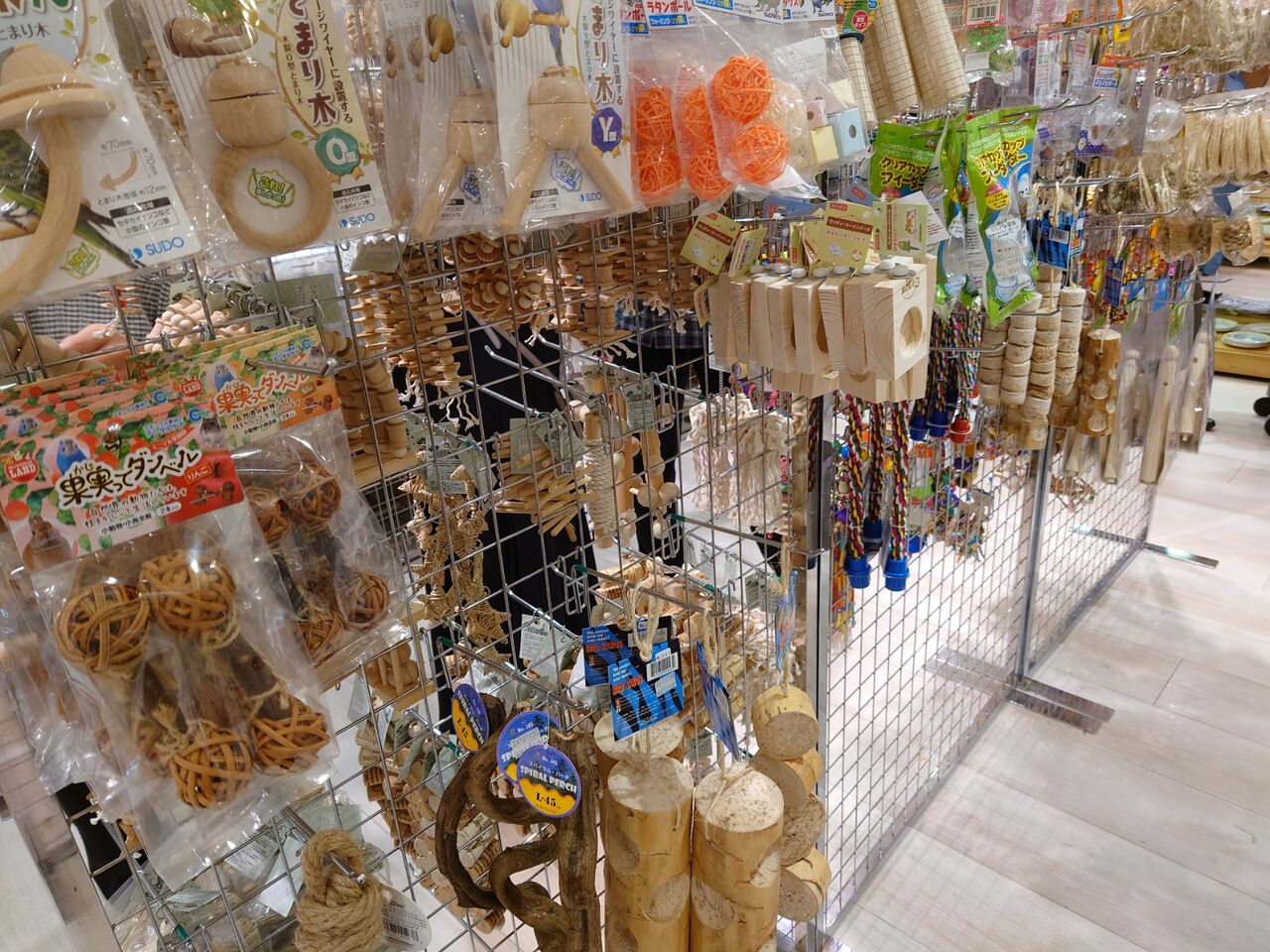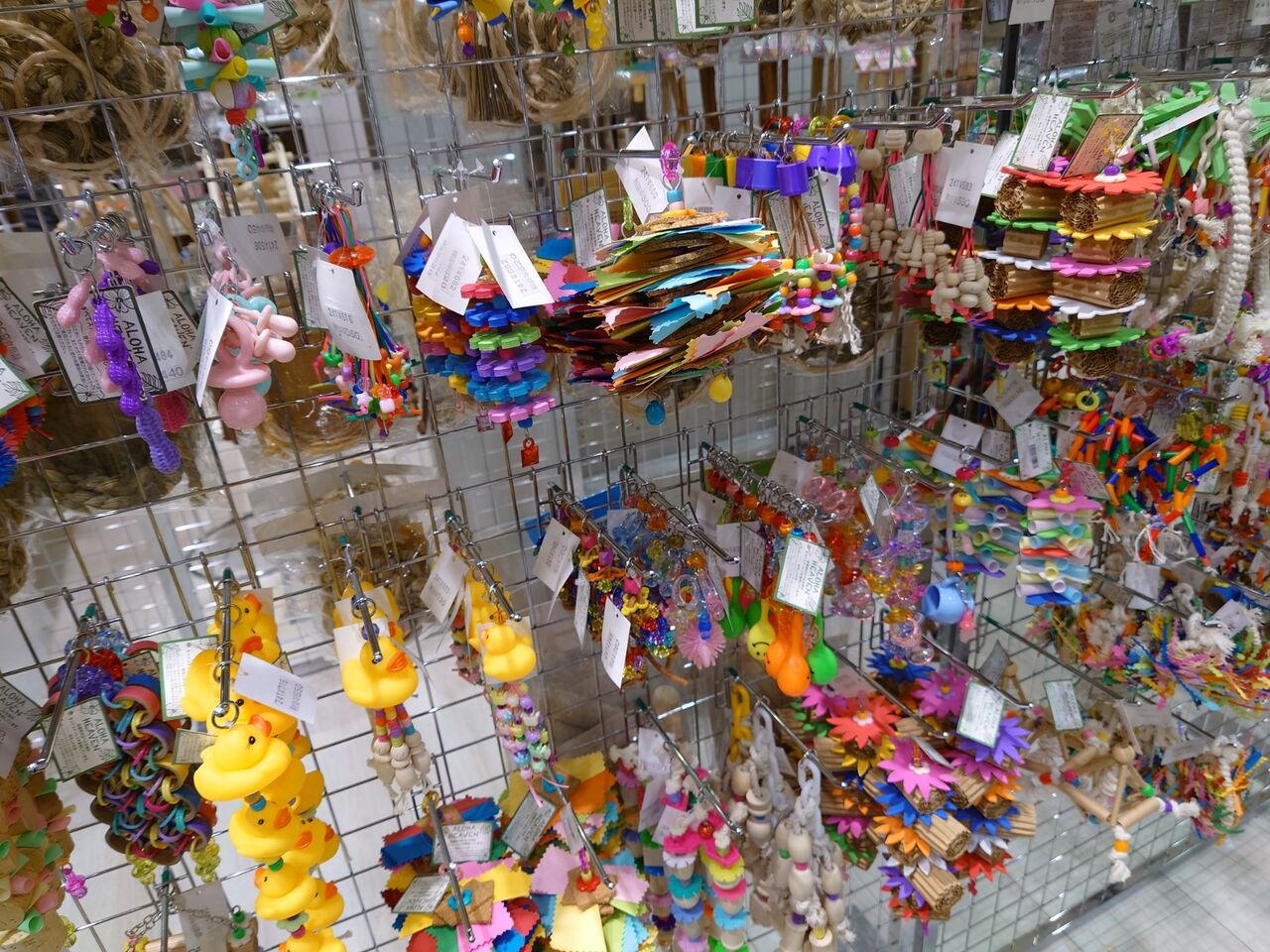 インコの餌も多岐にわたる品揃え。シードもペレットも粟もヒエも。