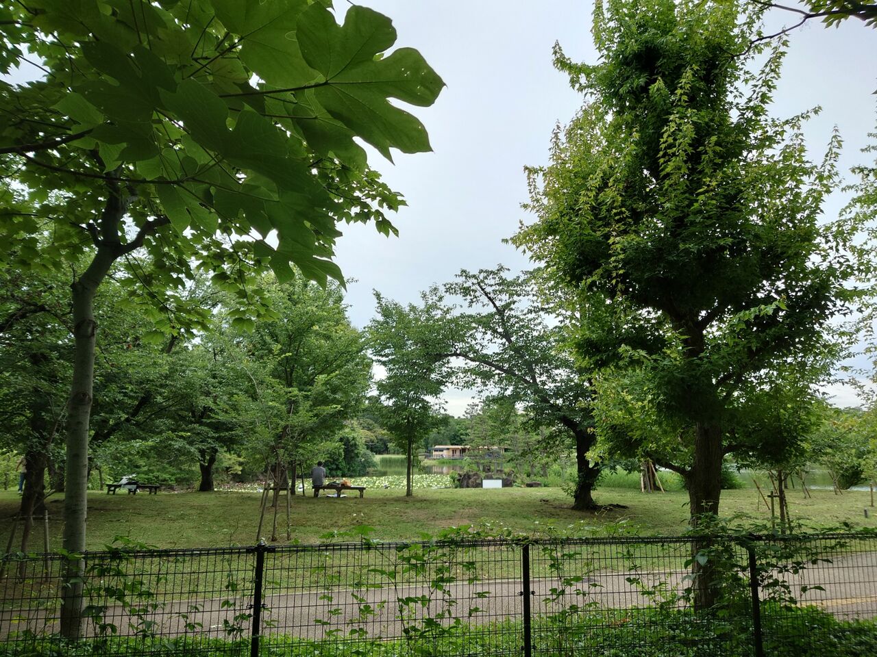 内側が植物園で、その水辺が見えるのです。