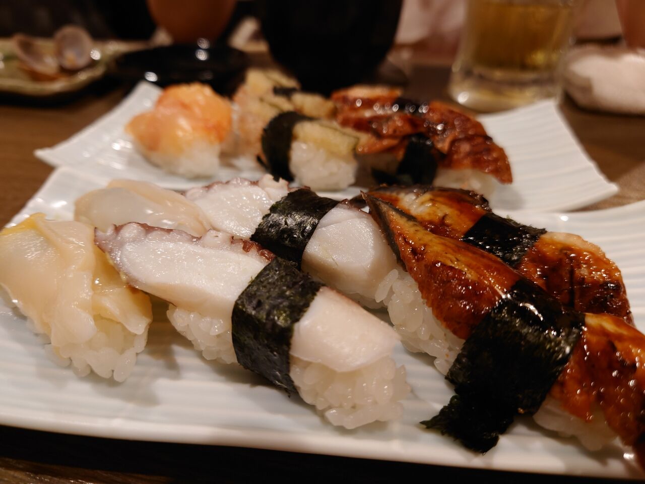 にぎり寿司は土用の丑の日だったのでウナギとタコとつぶ貝。