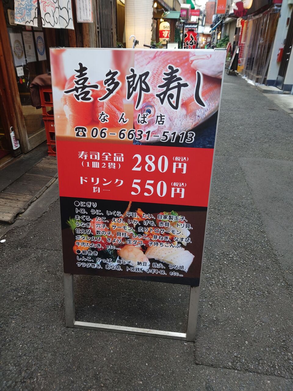 裏なんばにある「喜多郎寿し」がめちゃリーズナブルで美味しいです。