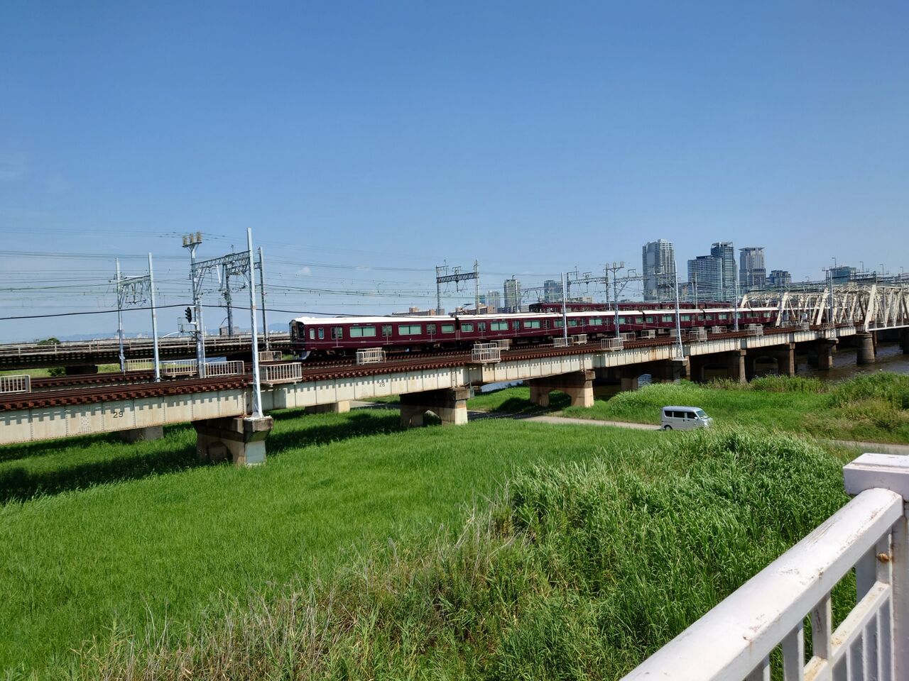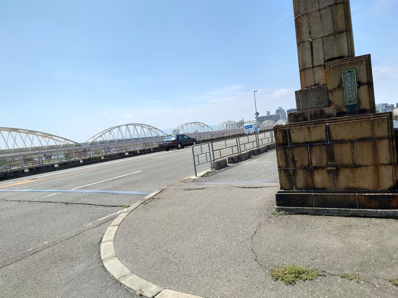 中津を出て、十三大橋を臨みます。