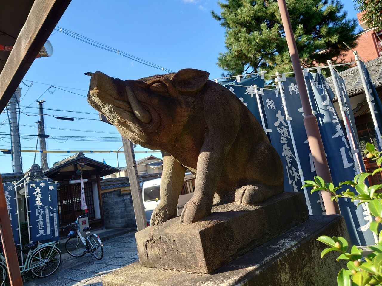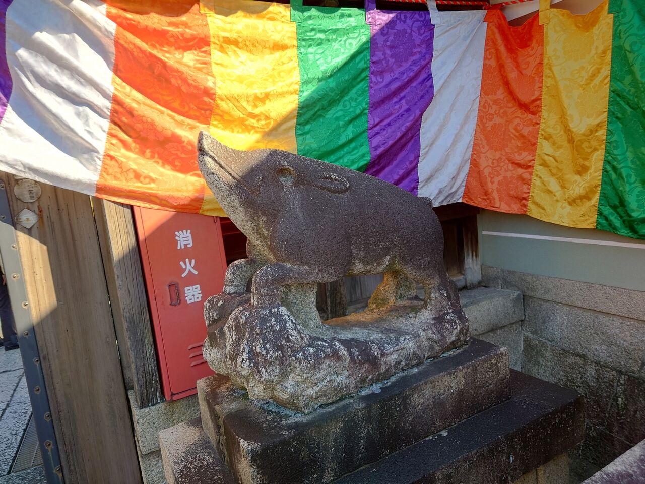 亥年の守り本尊なので狛犬が狛イノシシ