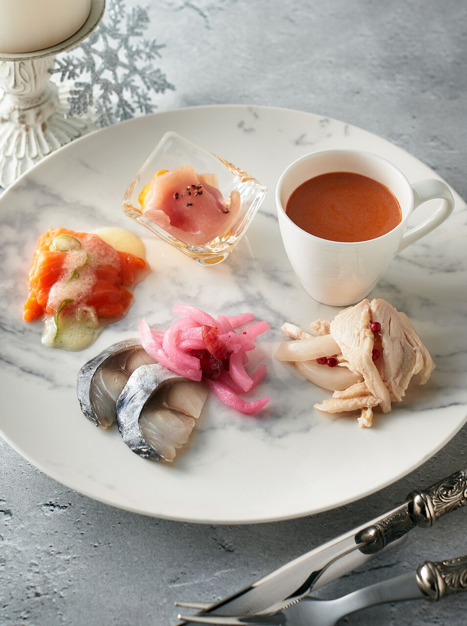 また、フードメニューには「エミリア・ロマーニャ風 ラザニア」や「海老風味のクリーミースープ」といった寒い季節に嬉しい体温まるお料理など、充実したラインアップが並びます。見て美しい、食べて美味しい煌びやかなスイーツを堪能する初冬のひとときをお楽しみいただけます。