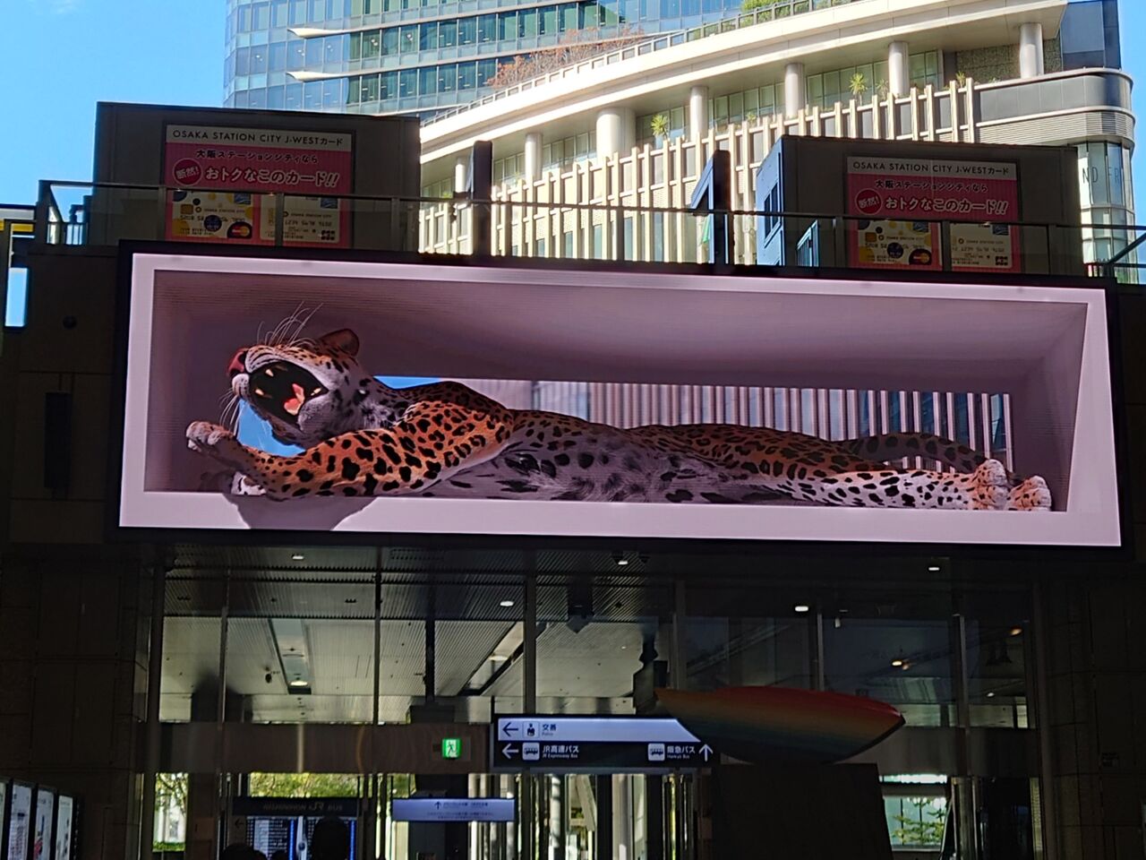 ちょっと前に話題になっていたJR大阪駅の豹の3D広告。