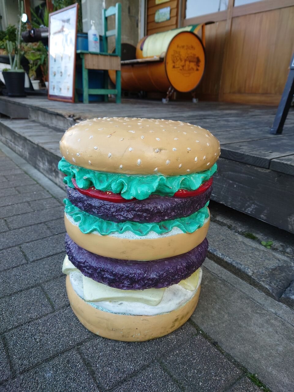 店舗前にはでっかいバーガーがお出迎え。