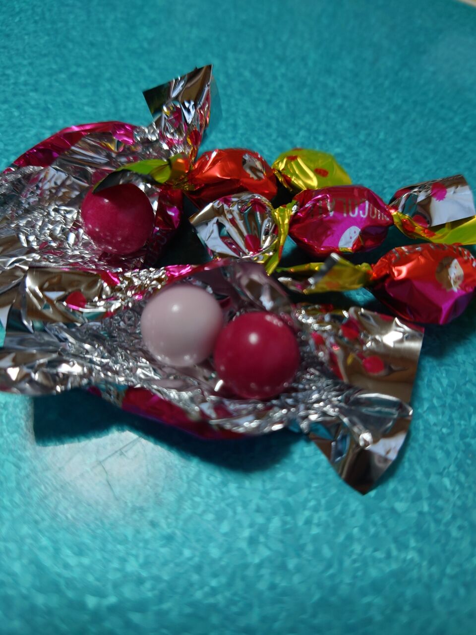 赤と言っていいくらい濃いピンクと淡いピンクの2種類入っていますが、味は同じです(≧▽≦)
