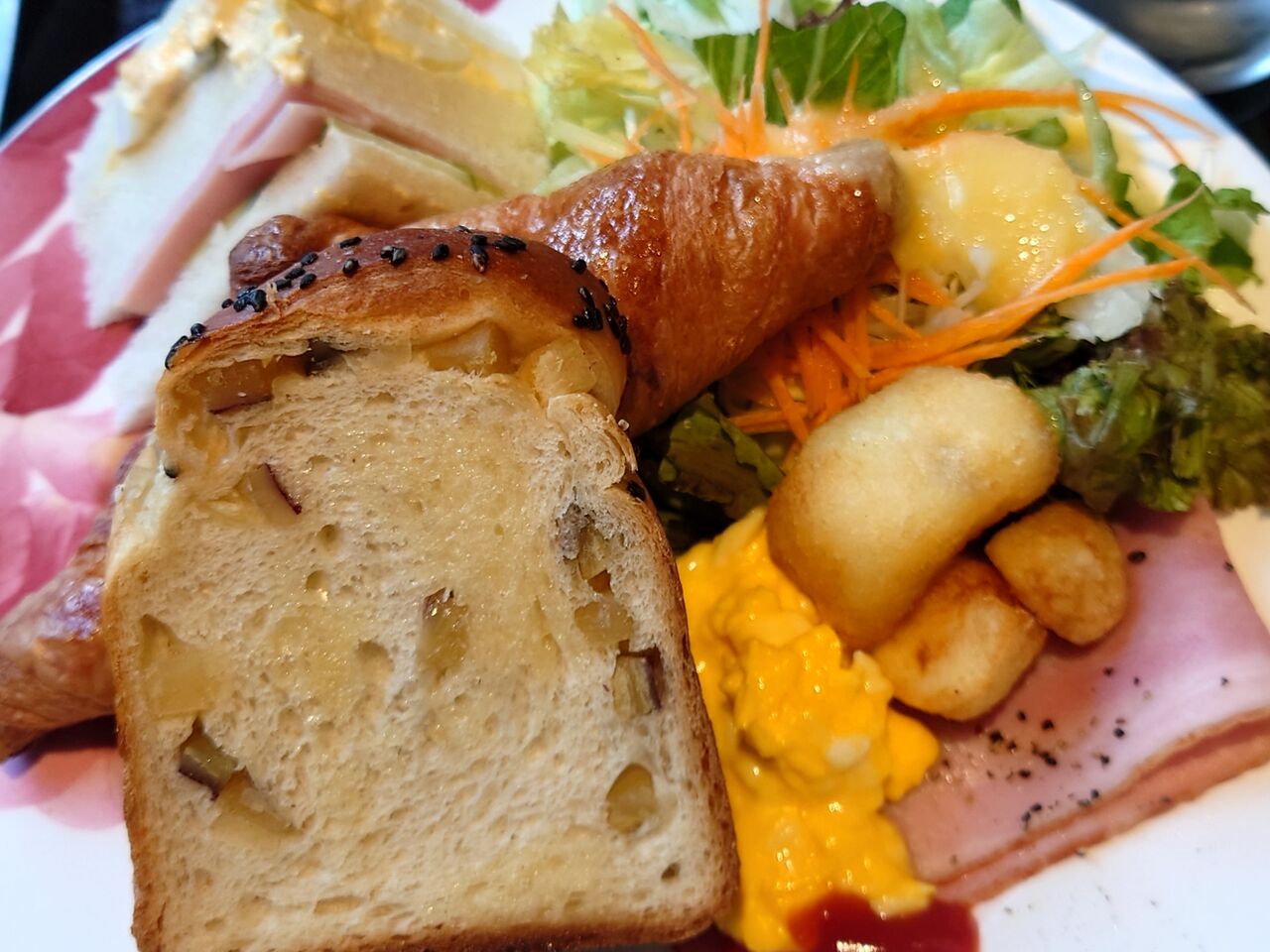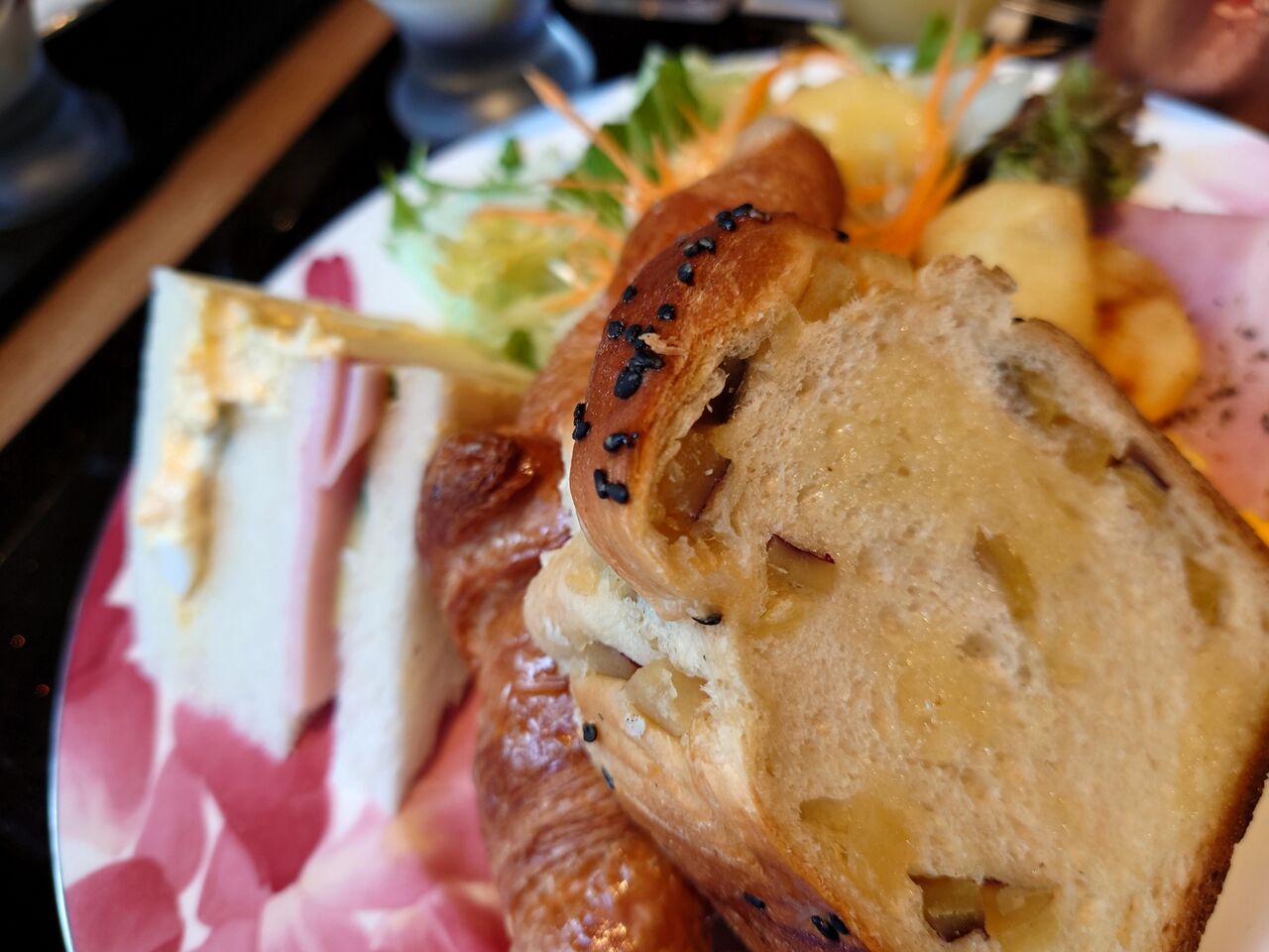 クロワッサン、トースト、サンドイッチの3種のパン付