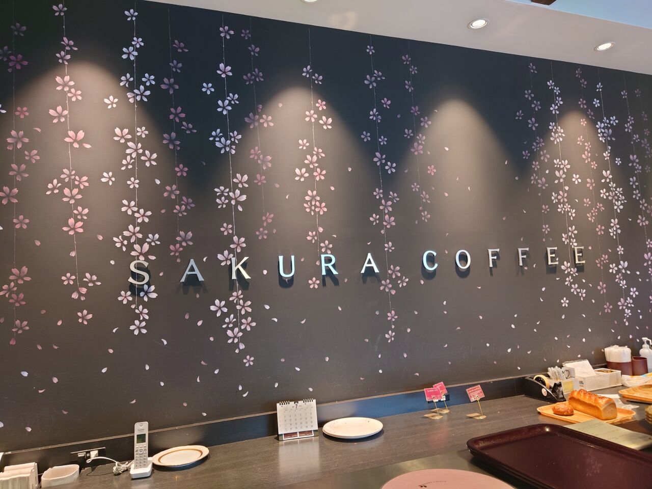 レジの後ろの壁紙まで桜で綺麗です。