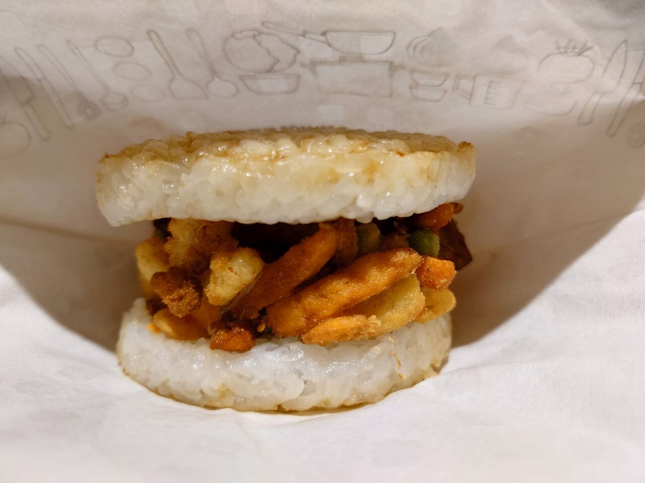 ご飯のバンズがモチモチで美味しい〜