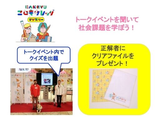 今回のトークイベントは楽しく学べるHANKYUこどもカレッジと連動。こどもたちにも社会課題について学んでいただけます。トークを聞けば答えがわかる『NPOクイズ』を出題し、正解者にはH2Oサンタオリジナルクリアファイルをプレゼントします!!ちょっとだけ誰かのための活動に耳を傾けてみませんか?