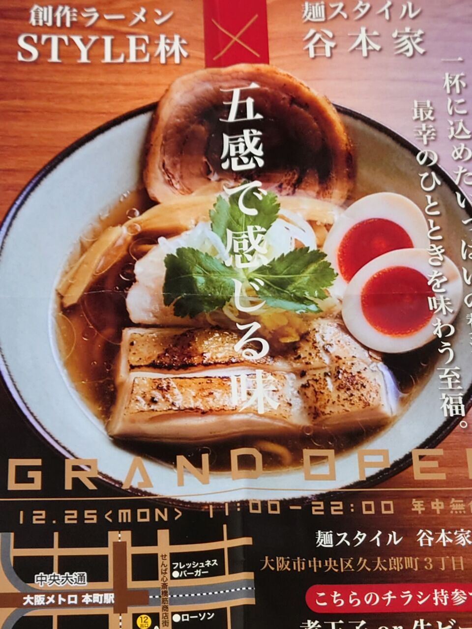 創作ラーメン『STYLE林』さんは塚本にあるそうです。百名店だし、とにかくいろいろな賞を獲られている名店。恐らくその店主さんが監修をされているのがこの新しくできた『麺スタイル谷本家』さん。