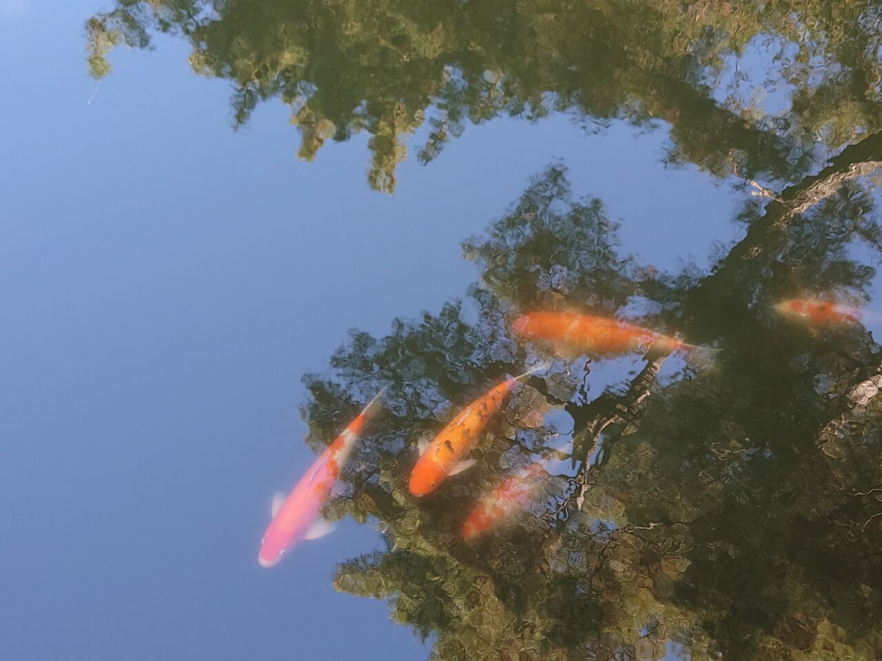 太鼓橋はなかなかの急こう配の橋で、朱色の欄干がとても美しいです。