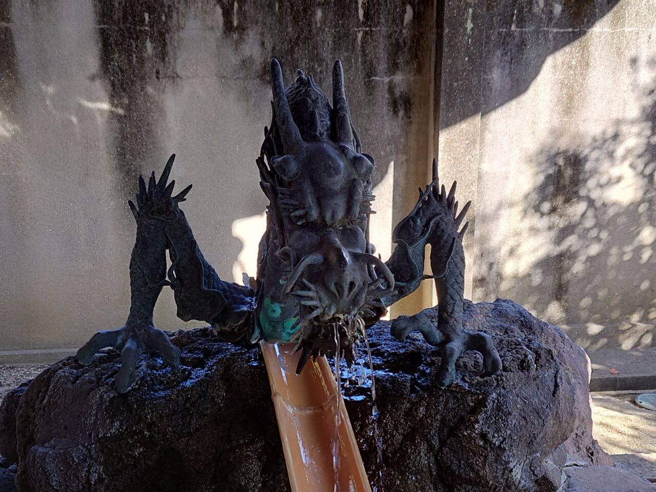 正面から入ると、拝殿が配置されているエリア前には有名なウサギの手水があるのですが、