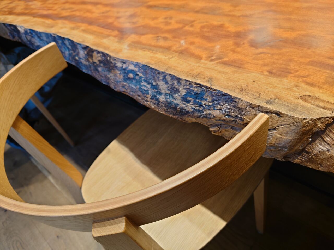 この椅子がおしゃれだけど、体の幅にピッタリすぎて、横を向くたびにガンって肘が当たるので一考願いたい(≧▽≦)