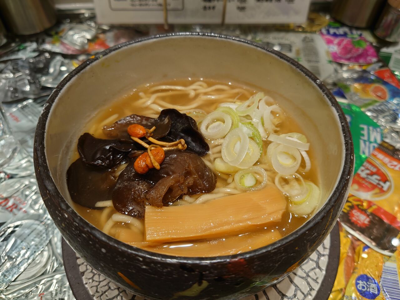 漢方薬のような、体の深部からじっくり薬効成分が効いてきそうなラーメンでした。