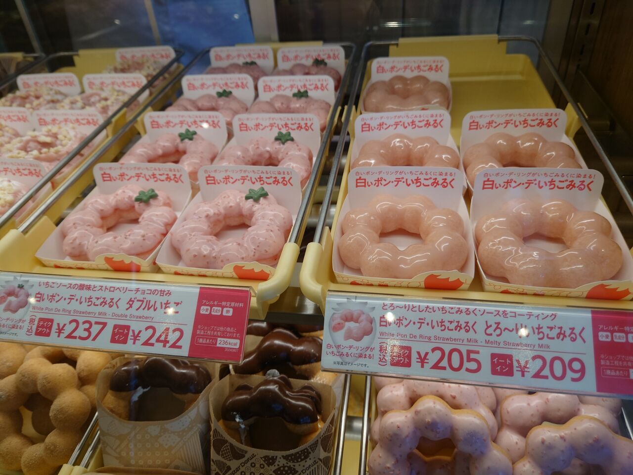 「白いポン・デ・いちごみるく とろ~りいちごみるく」と「白いポン・デ・いちごみるく 練乳&クッキー」と「白いポン・デ・いちごみるく ダブルいちご」の3種類だそうです♡(> ਊ <)♡