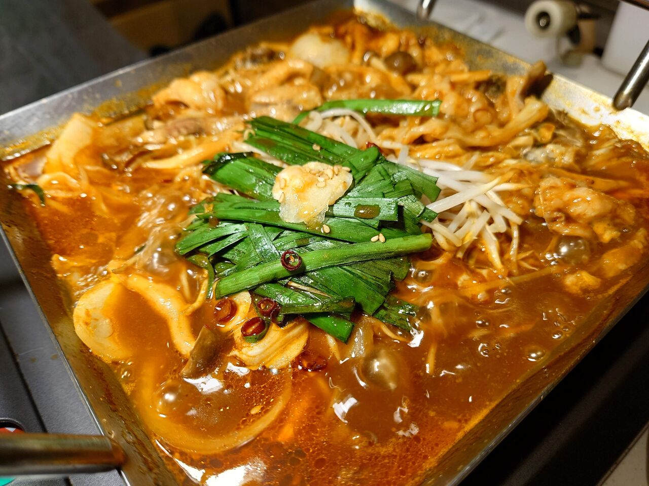 甘辛い味付けの美味しいこと!ホルモンもコリコリ、フワッ、ジュワッ!などの食べ心地が楽しいし。お野菜もいっぱい摂れて嬉しい。