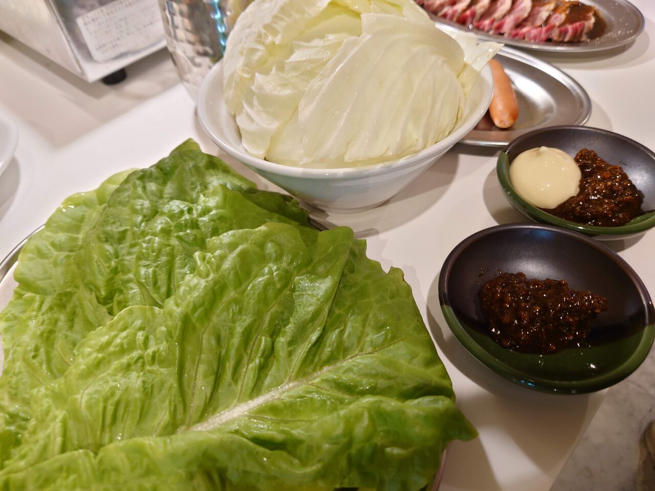 野菜についてきた味噌も、濃くて甘めで旨味をさらにアップさせてくれます。マヨネーズもなんだかマイルドで美味しいような・・。紙エプロンもご希望なら、テーブルに設置させているのでお使いください。