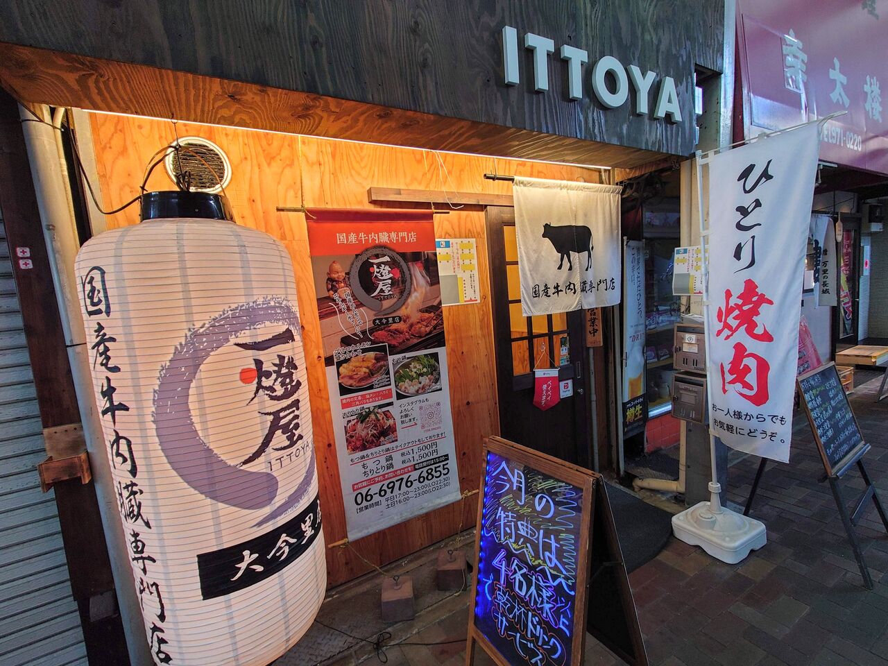 今里の商店街にあるホルモン焼肉専門店、「一燈屋」さんは一人でも入りやすいお店です。