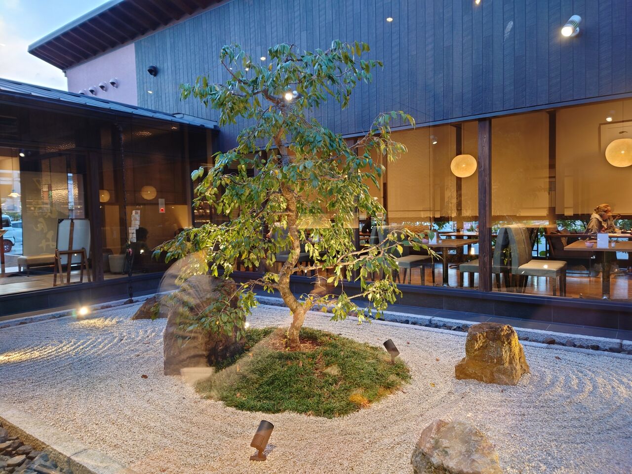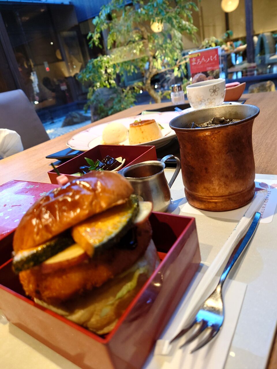 お店中央の桜の木が、花は咲いていなくてもいい雰囲気を醸し出しています。