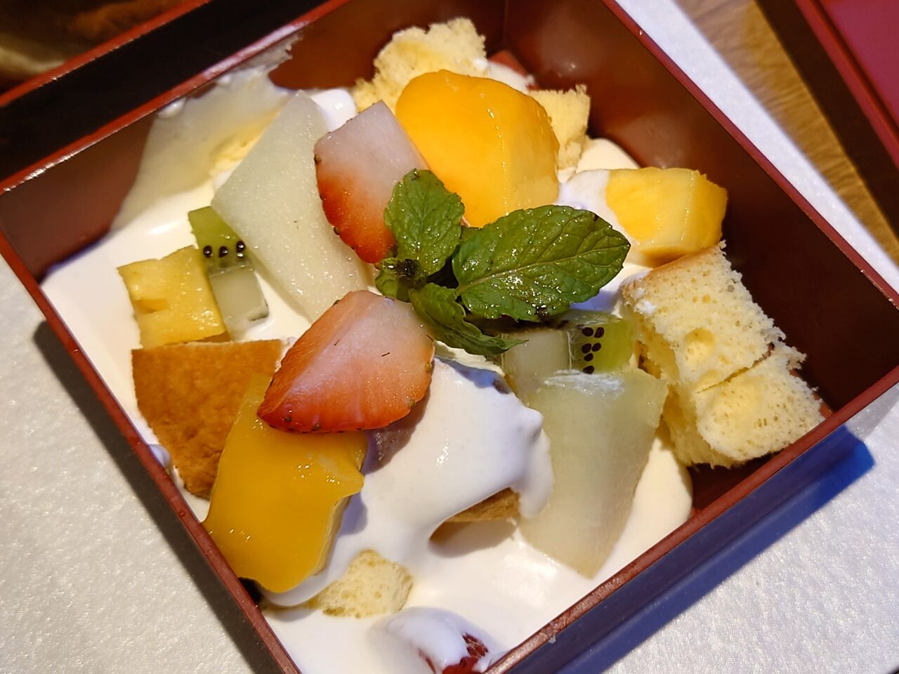 フルーツと軽めのホイップはあまり固く泡立てていない。
