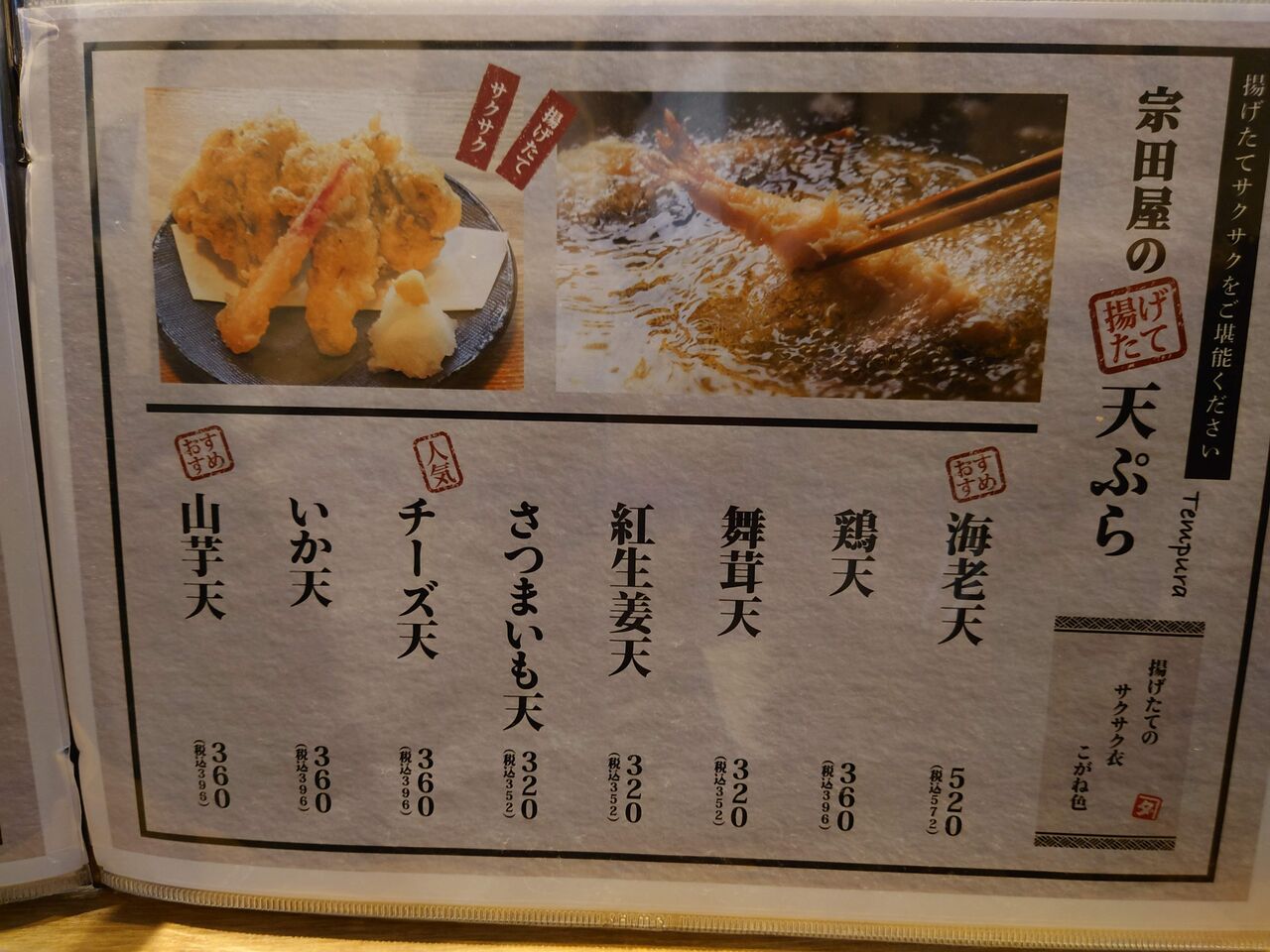 海老天、鶏天、舞茸天など様々で、美味しそうです。