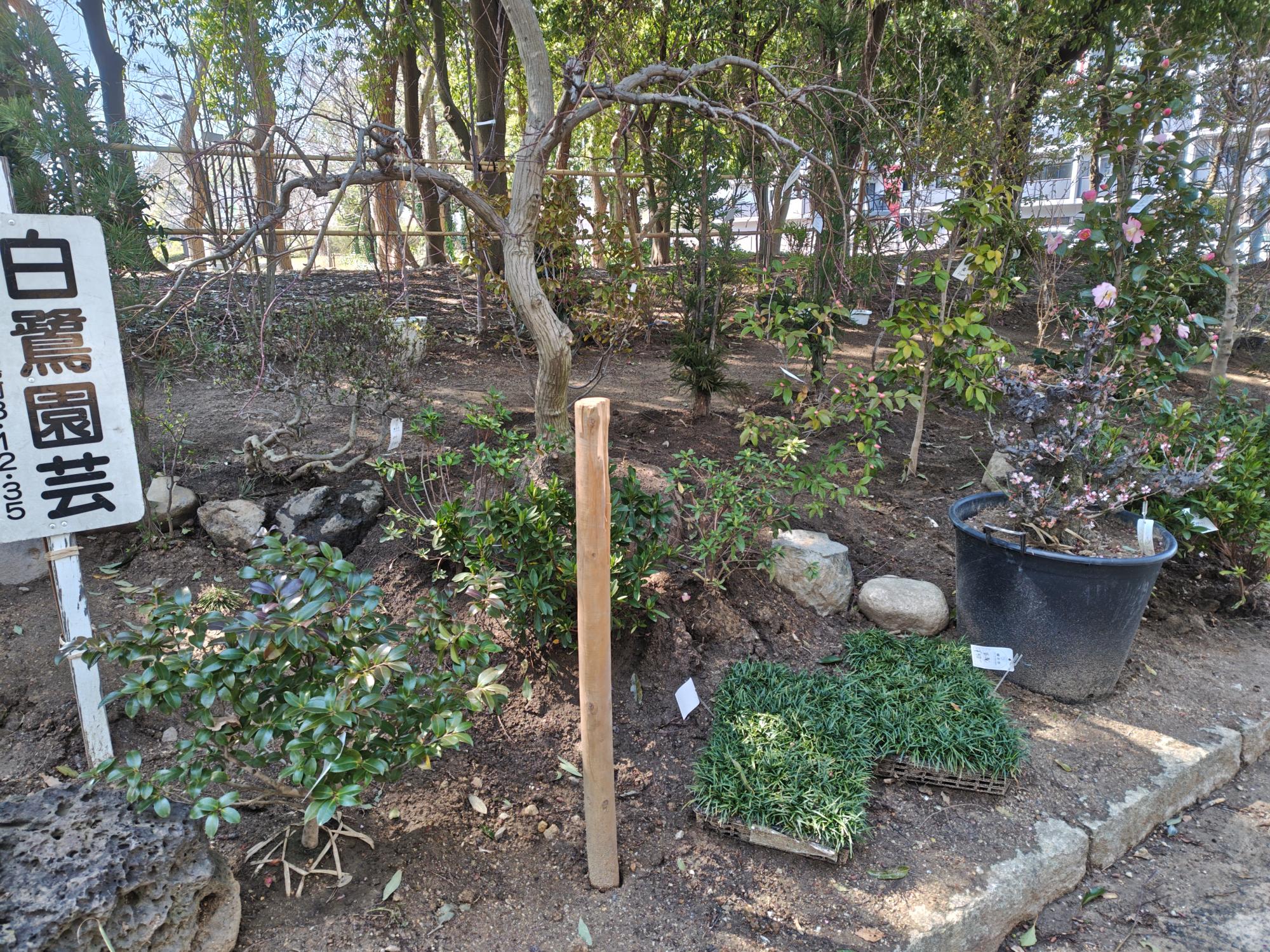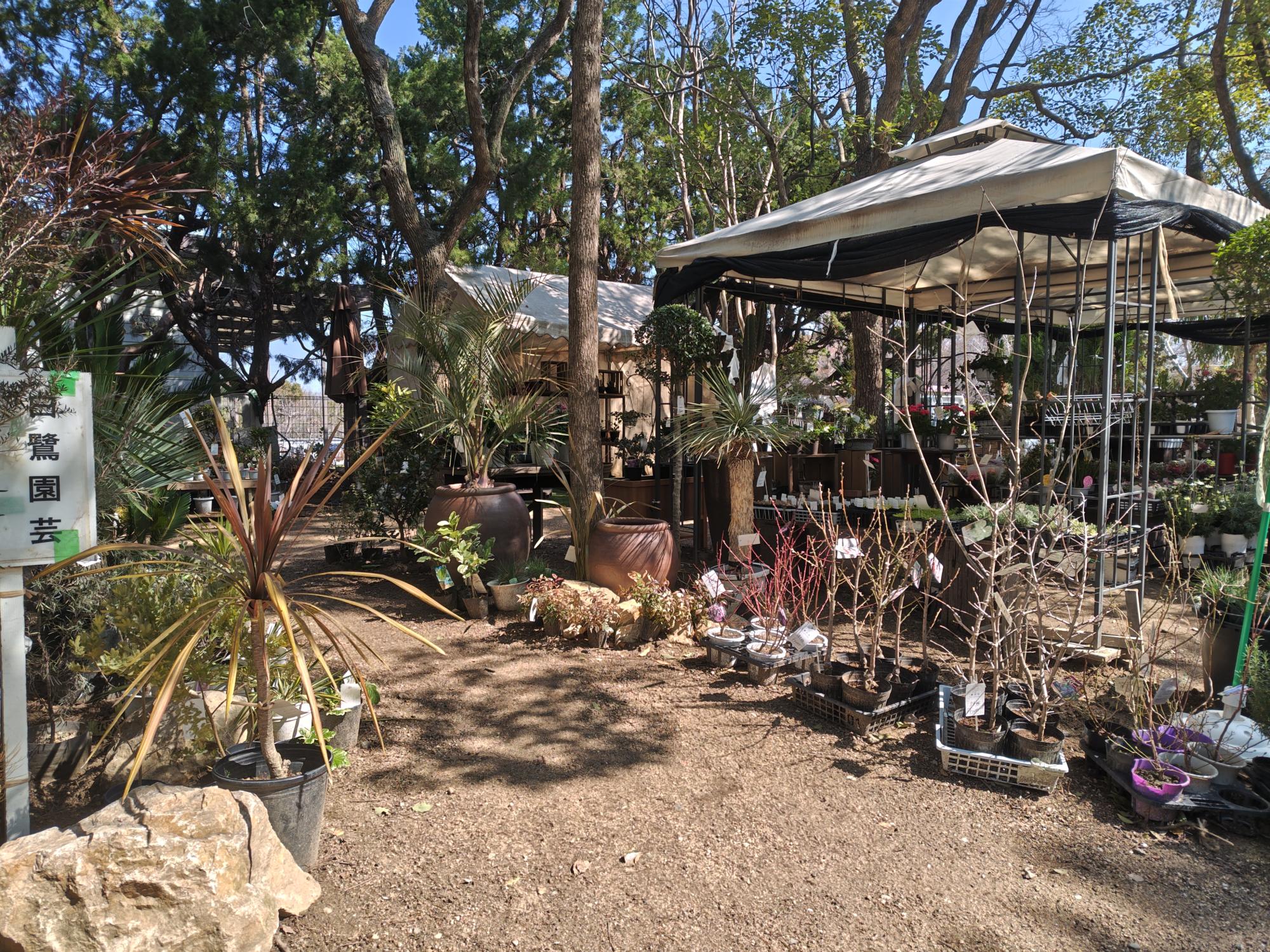 「花とみどりフェア 植木市」では、花や苗木、庭園樹の展示販売をされており、リピーターの方も多いです。大きな木から植木鉢に植わった木やお花などが広いエリアにたくさん展示されています。看板の「白鷺園芸」さんは、堺市東区大美野にあり、造園、庭園管理、植木販売をされていて、庭木の植え替えも行ってくれるそうです。