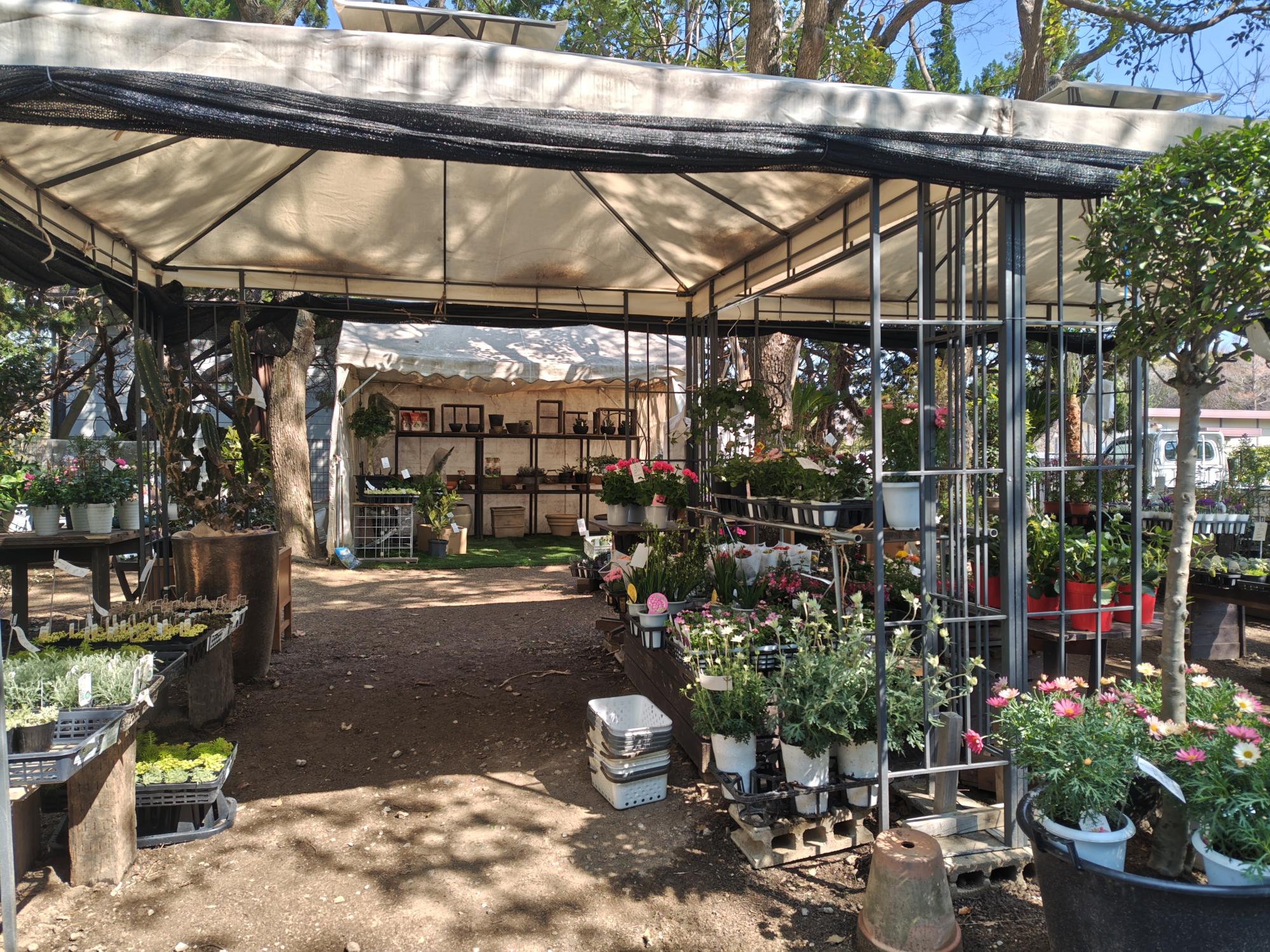テントが張ってあるところには主にお花や観葉植物が展示されています。お花屋さんで購入する切り花も美しいですが、小さな苗木がだんだん大きく育っていく姿を見られるのも、ガーデニングの醍醐味の一つですよね。