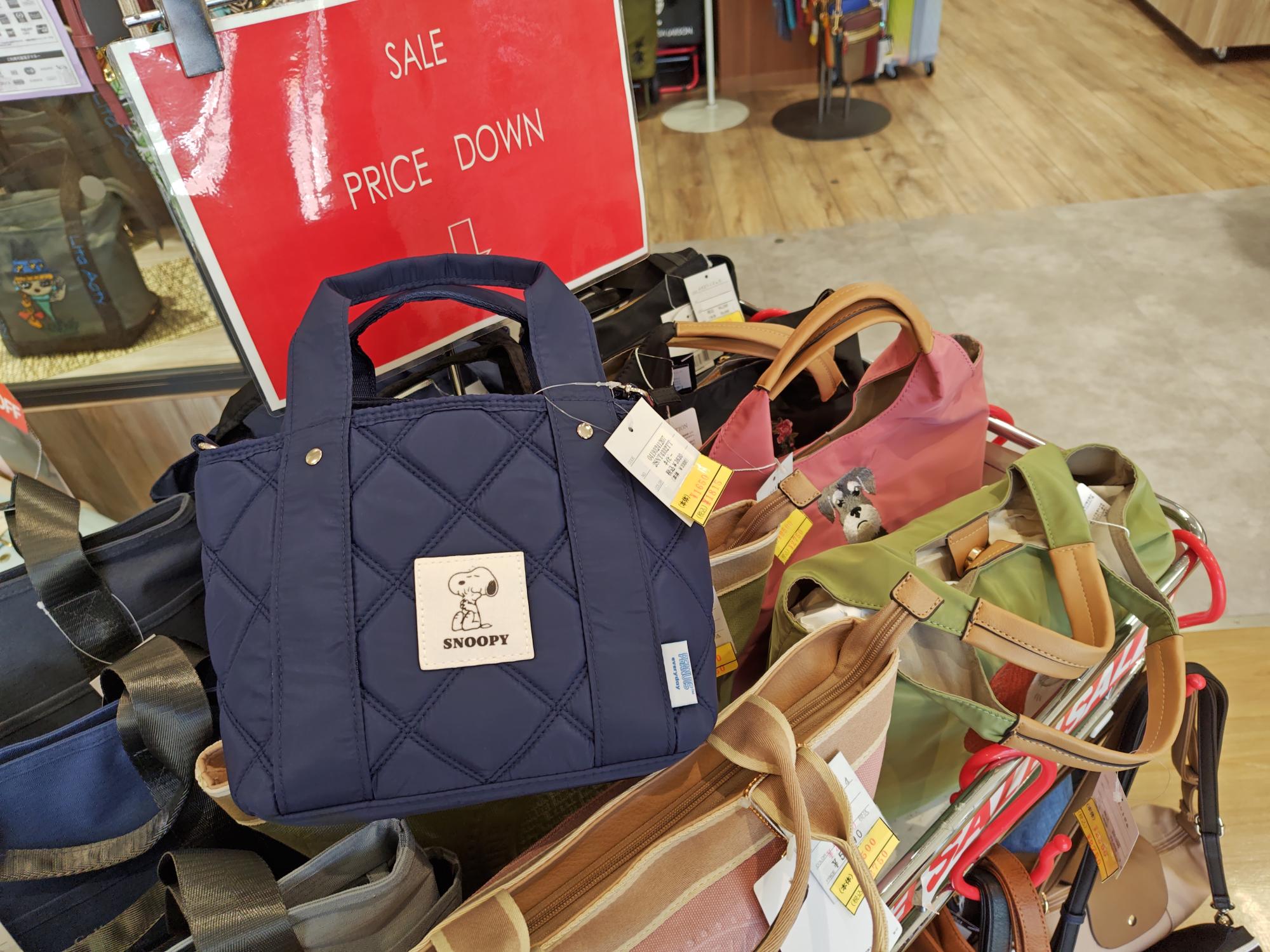 現在、「Noel yamamoto 美原店」さんではセール中で、このように、可愛いけれど可愛すぎないキャラクターバッグもプライスダウンで購入できます(2025年4月12日撮影)。お店の方に伺ったところ、セール期間は特に定まっていないとのことなので、まだ購入可能かもしれないですよ。