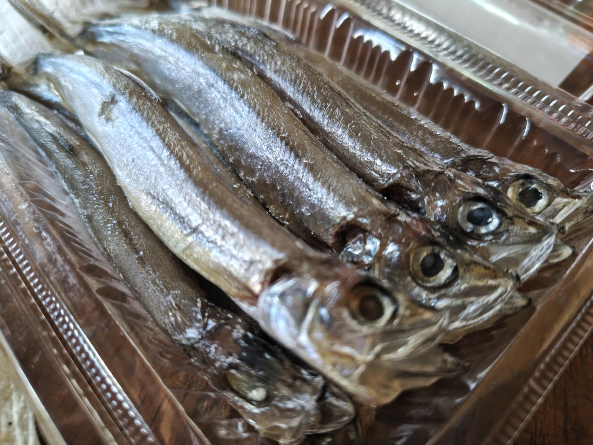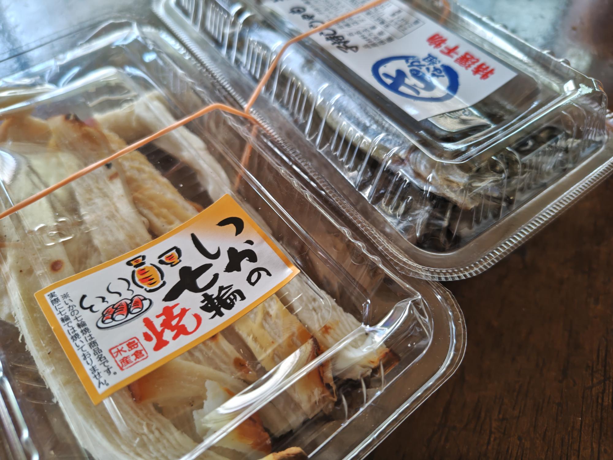 しばしの葛藤ののち、ふたつには絞れたので、「いかの七輪焼」と「子持ちししゃも岩塩干」を購入しました。こちらのししゃもは冷凍で保存も可能で、フライパンで焼いて食べられるとのことなので、便利ではないでしょうか。