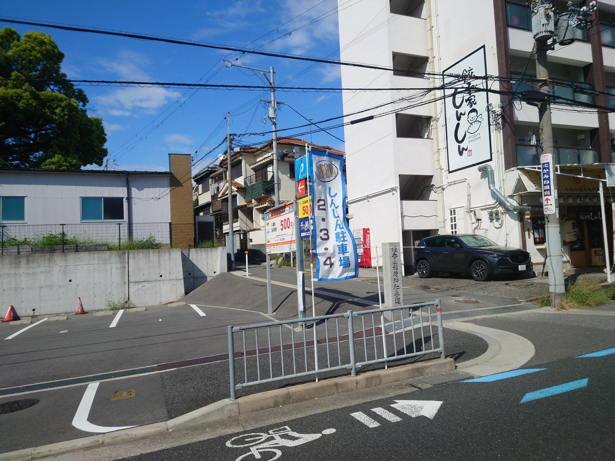 何もつけなくても美味しくいただける餃子が魅力の「餃子家しんしん」さんが入っているビルの横の坂を上がると浅香山稲荷神社があります。そのまま道なりに進み、大きな道路に出たところで、バスは少し北へ向かいます。