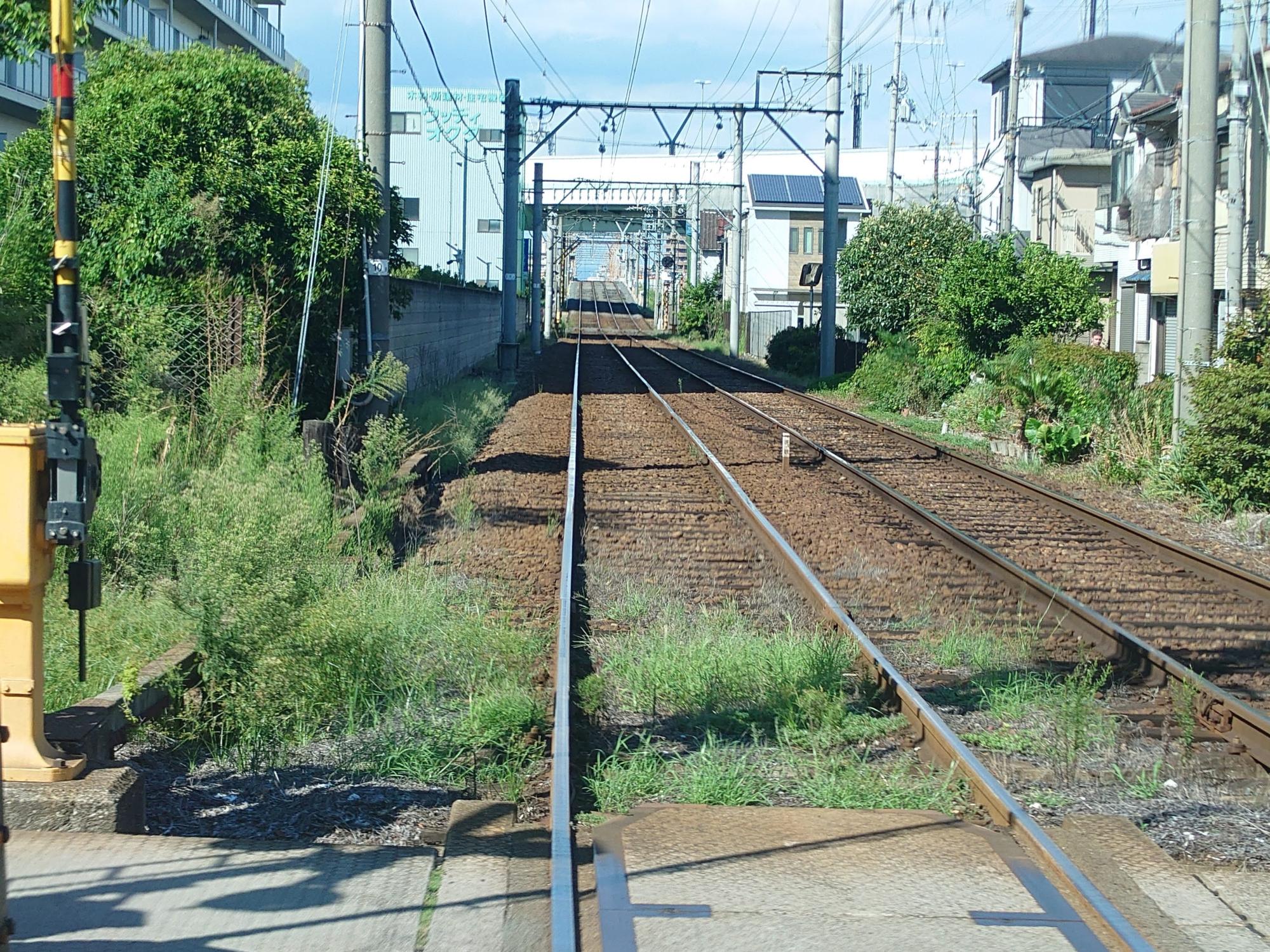 高須神社は通りませんが、途中で大道筋を渡りました。大道筋は旧紀州街道にあたります。こちらもちん電が走るルートです。大道筋の路面には、ちん電の線路が走っています。