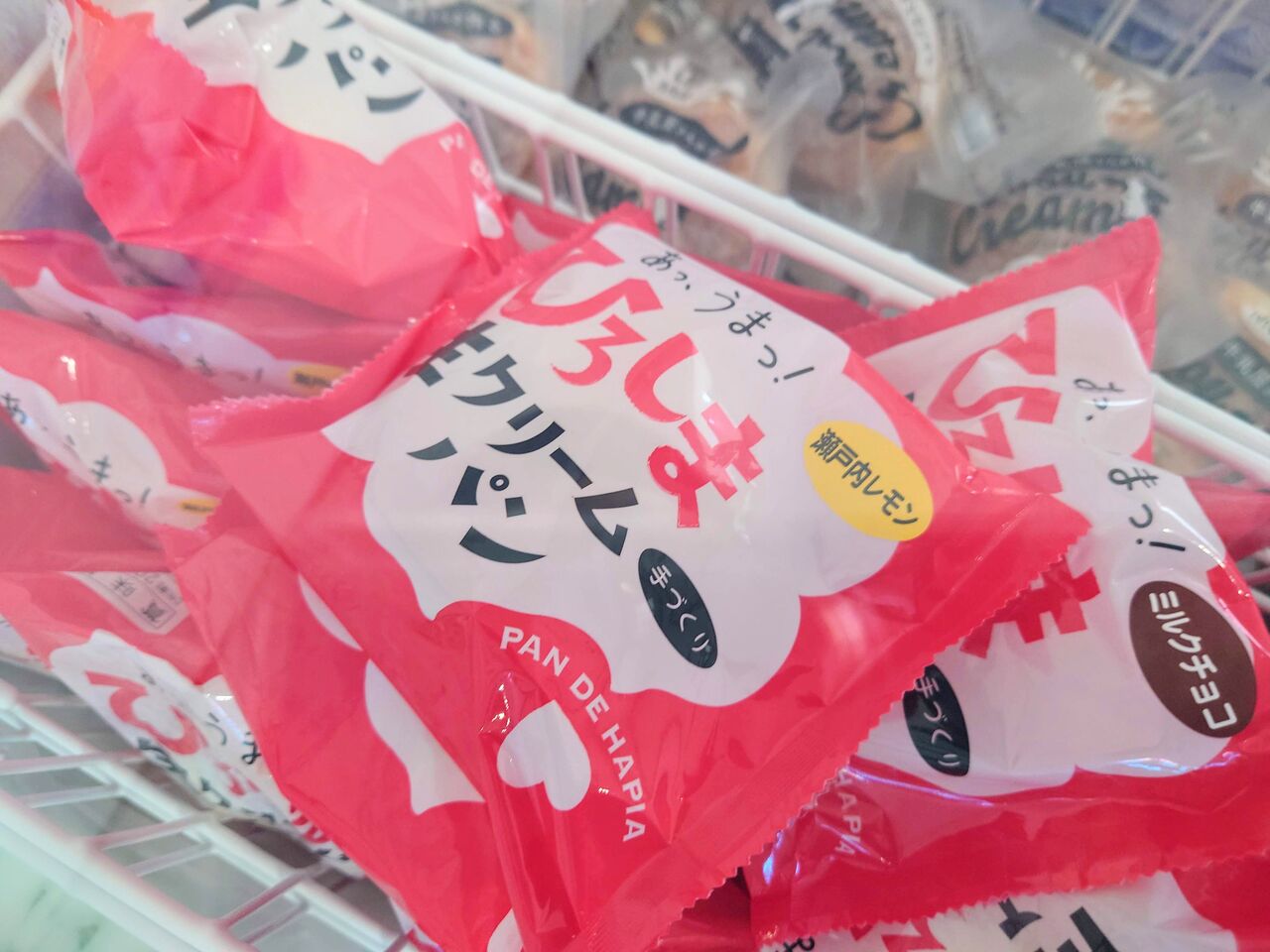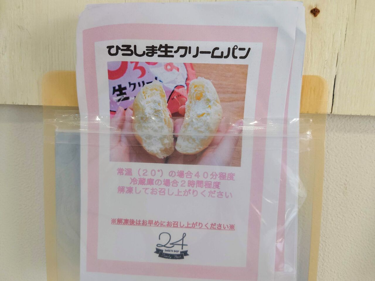 「ひろしま生クリームパン」は生クリームたっぷり! 説明書の写真がパンをパカッと割って中のたっぷりの生クリームを見せているのがまた美味しそうで、購買意欲をそそります。写真で断面が見られるのも買うときの参考になり、ありがたいですよね。