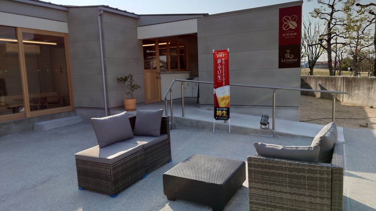 堺市美原区大保の「高岡珈琲」は、お隣に「堺市立みはら歴史博物館(M・Cみはら)」と大きな噴水のある「美原ふる里公園」があり、オープンな雰囲気です。