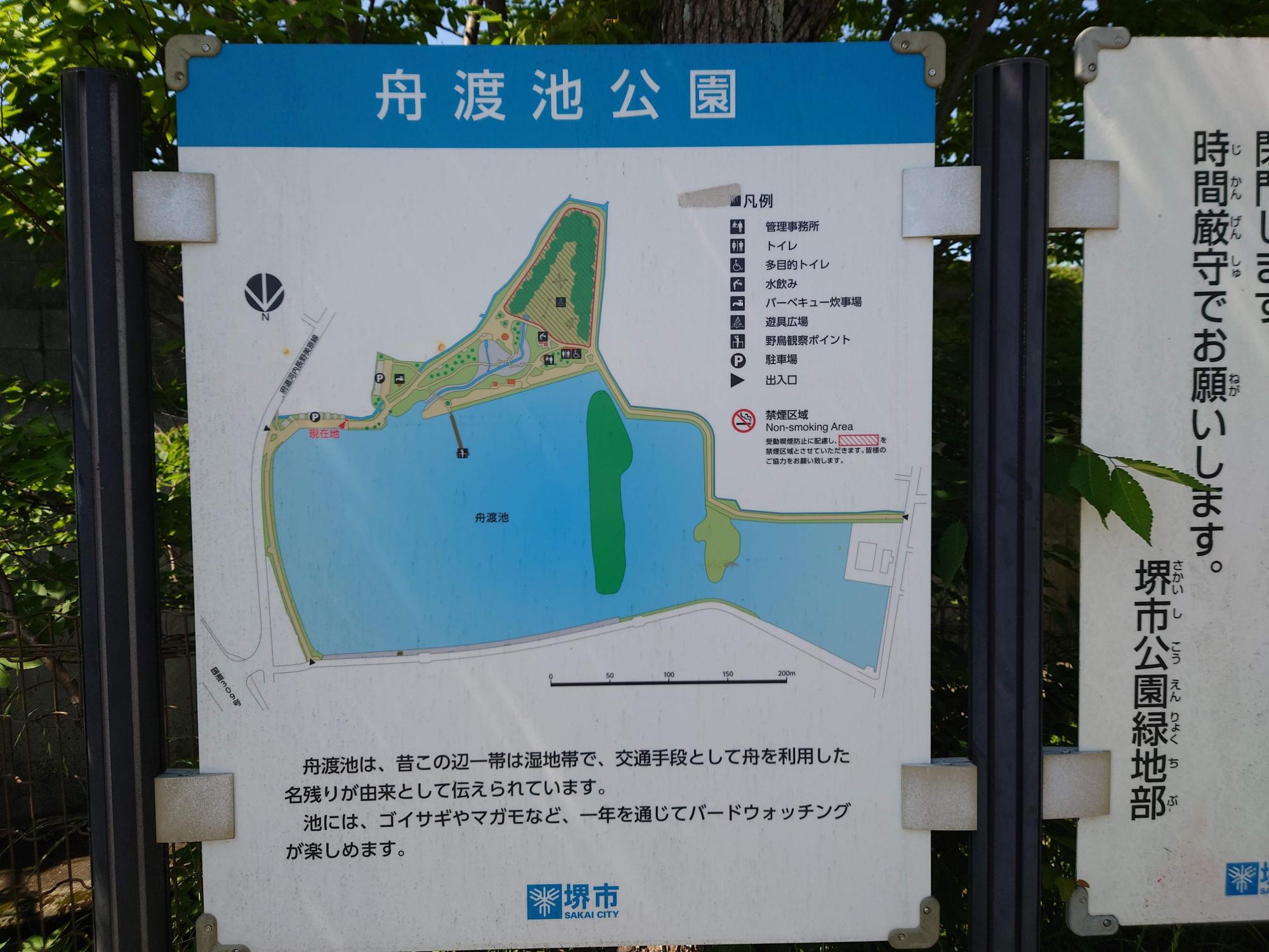 堺市美原区阿弥にある舟渡池公園は、その名の通り大きな池・舟渡池に面している公園です。