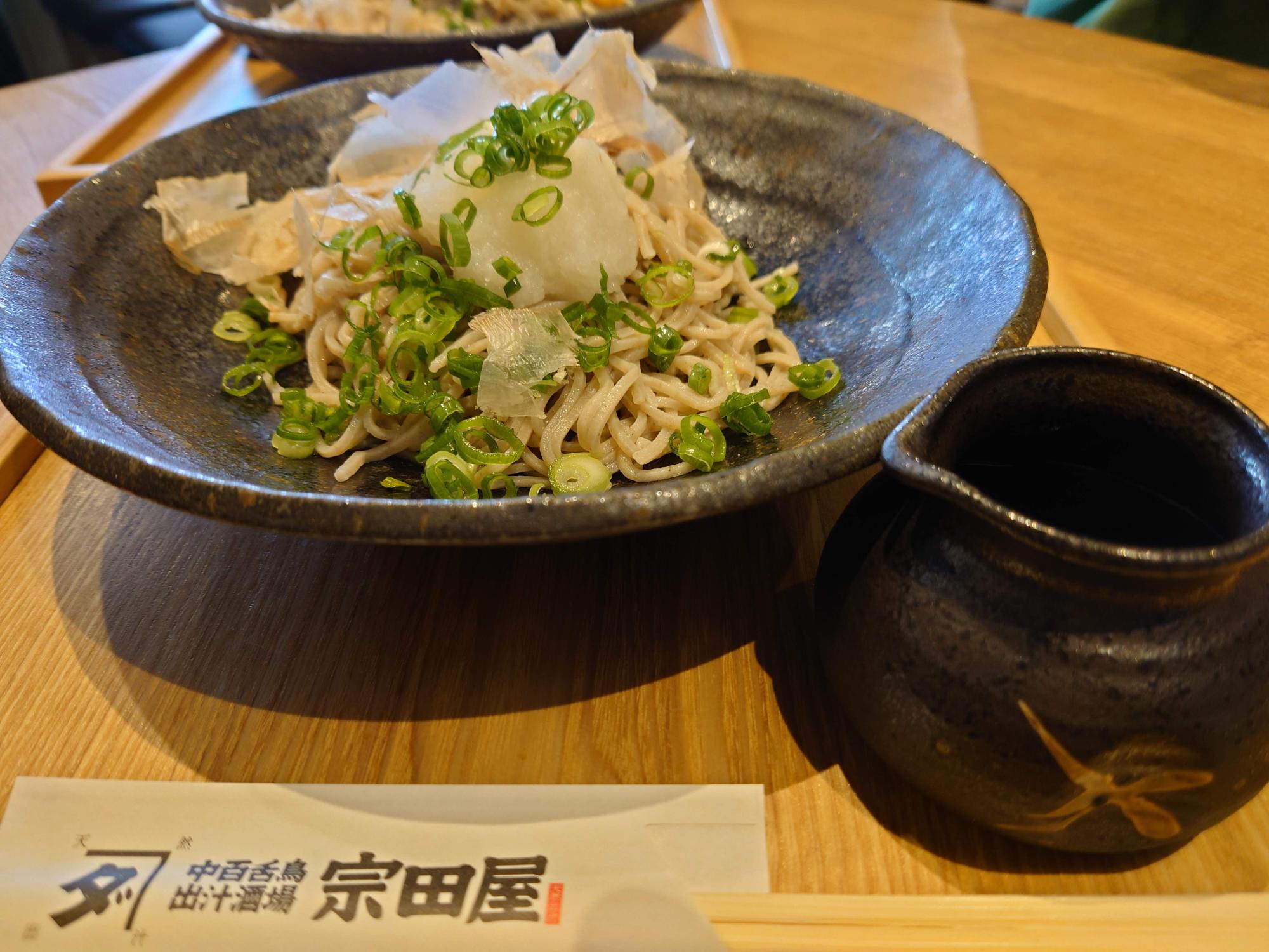 大きく削ってあるかつお節も存在感があって美味しいです。お蕎麦も大根おろしも冷たくて美味しいです。蕎麦の香りも味もしっかりして、歯ごたえもあり、大満足できました。