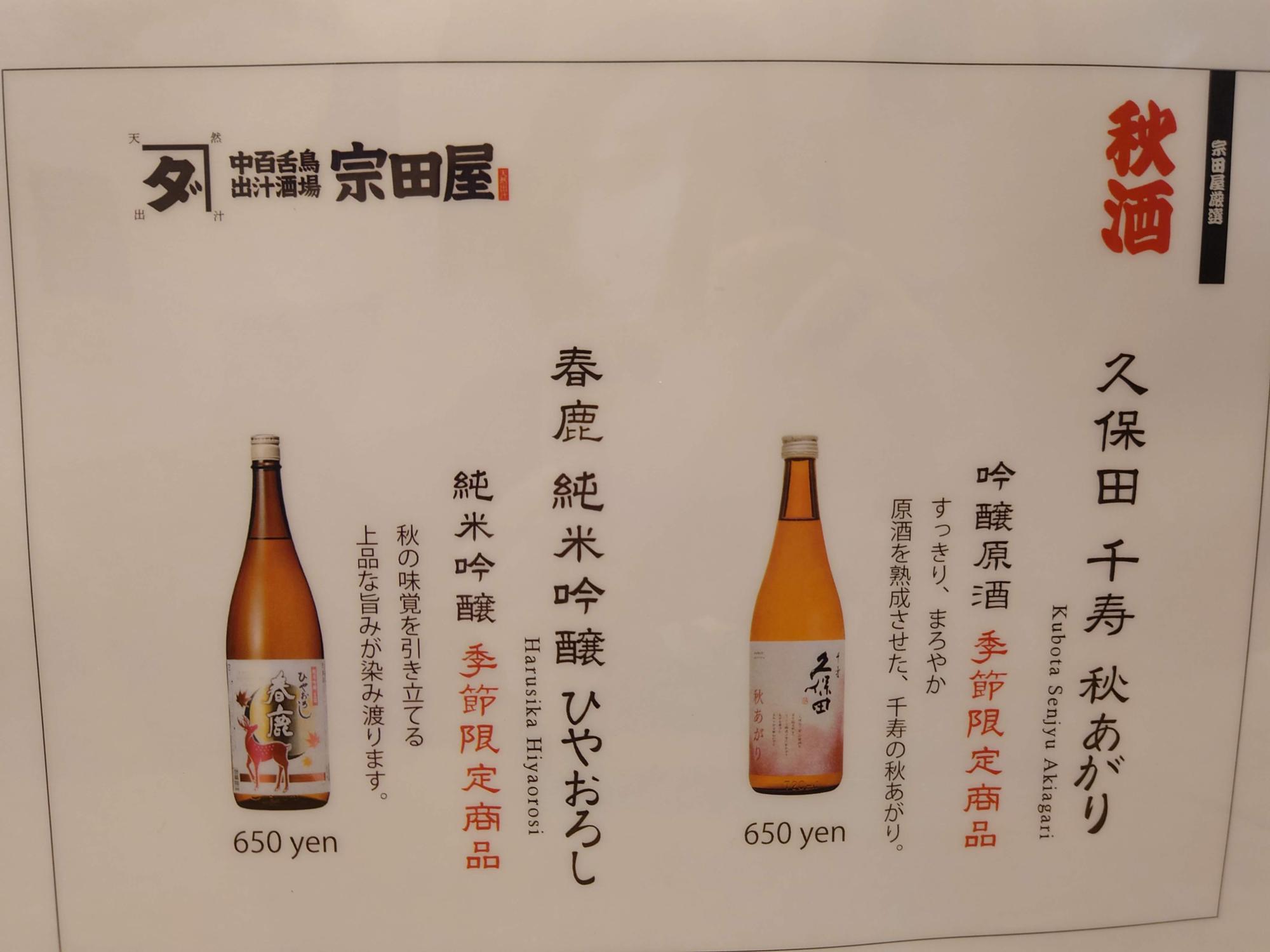 お蕎麦ももちろん美味しかったのですが、おでんや鉄板料理や串料理など、夜に日本酒などと一緒にいただきたいメニューもたくさんありました。もちろんこだわりの日本酒もありますよ。季節限定「秋酒」もありました。