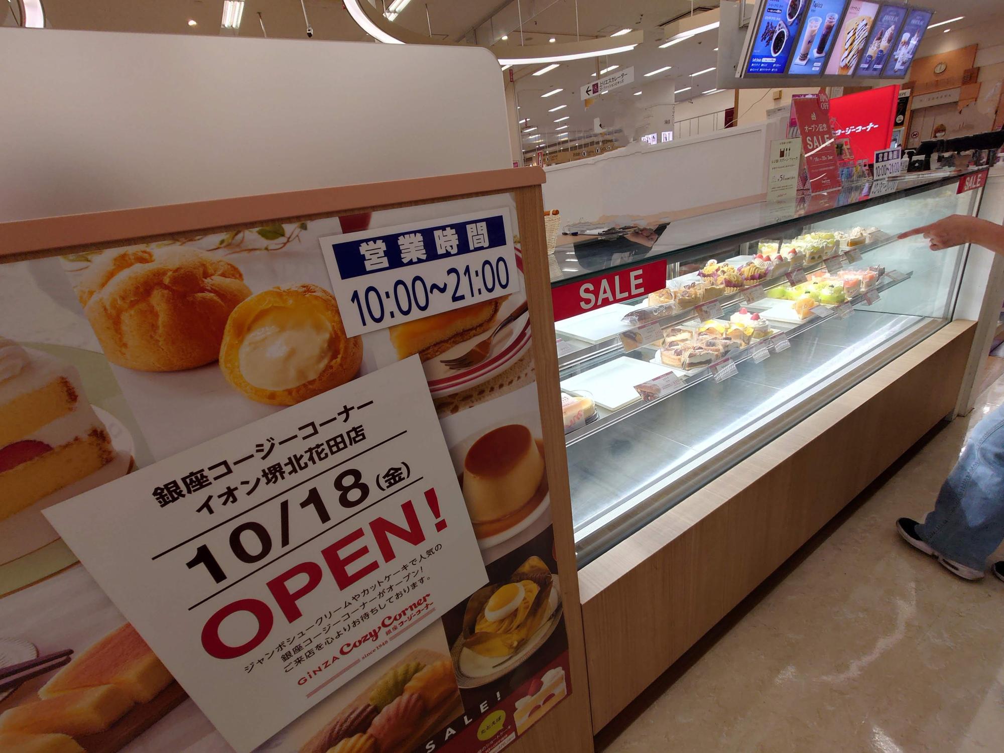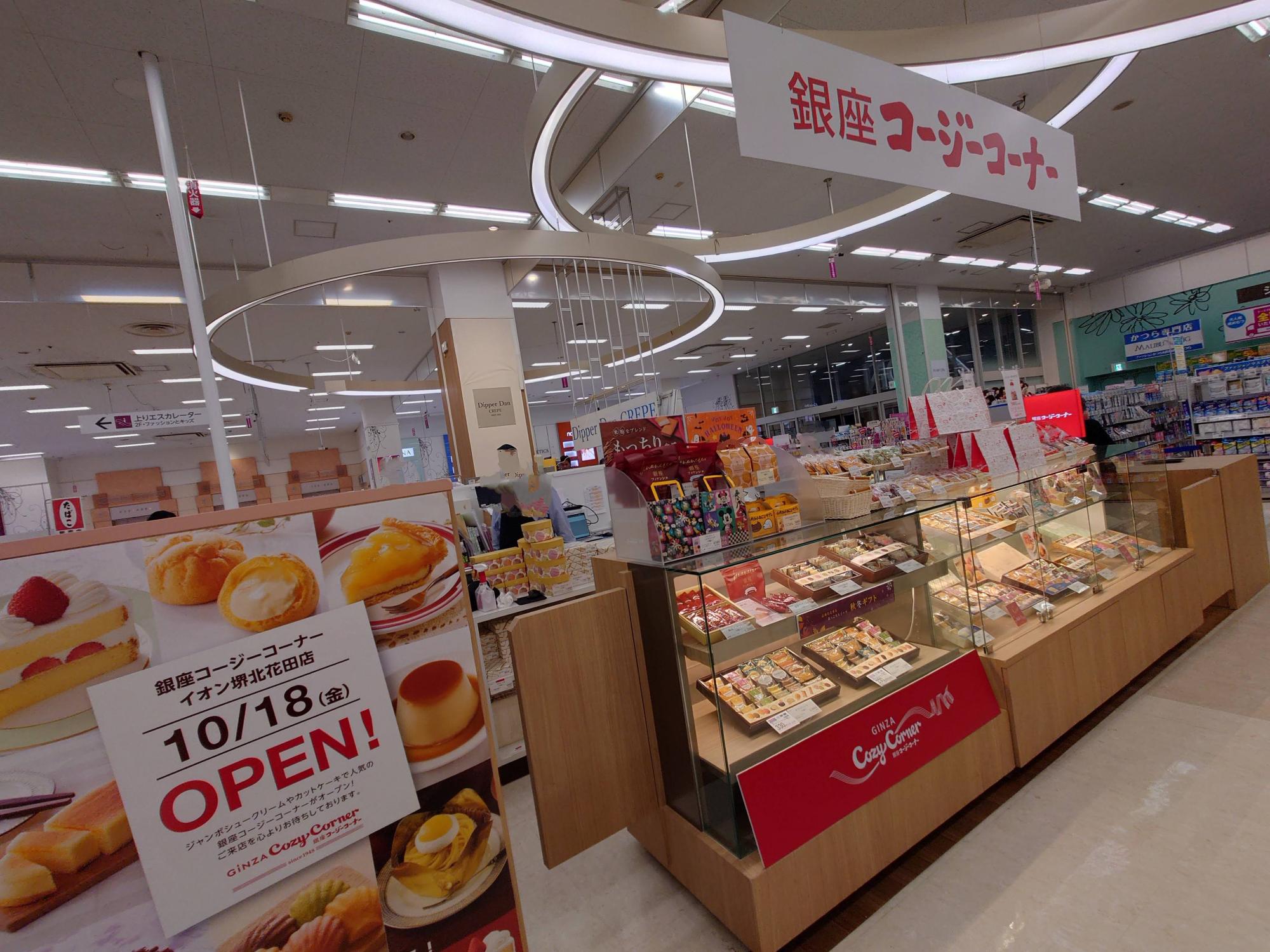 2024年10月18日(金)、堺市北区東浅香山町のイオン堺北花田店1Fに「銀座コージーコーナー」がオープンしました。オープン日当日に、情報をアップはいたしましたが、画像はオープン前のものだったので、今回は実際にオープンされてからのものをお届けします(2024年10月18日撮影)。