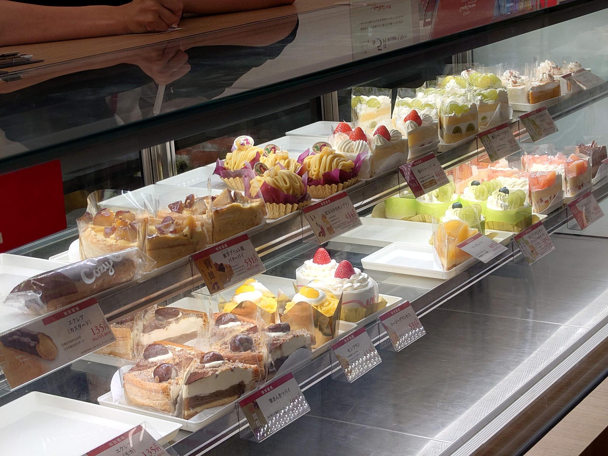 訪れたのが夕方だったのと、オープン当日で、オープン記念セールが行われていたのもあって(オープン記念セールは10月20日に終了しています)、品薄にはなっていましたが、美しくて美味しそうなショートケーキが複数並んでいました。店舗はL字型になっていたのです。いずれにせよ、またショートケーキが買えるお店がオープンしたのは嬉しいですね。