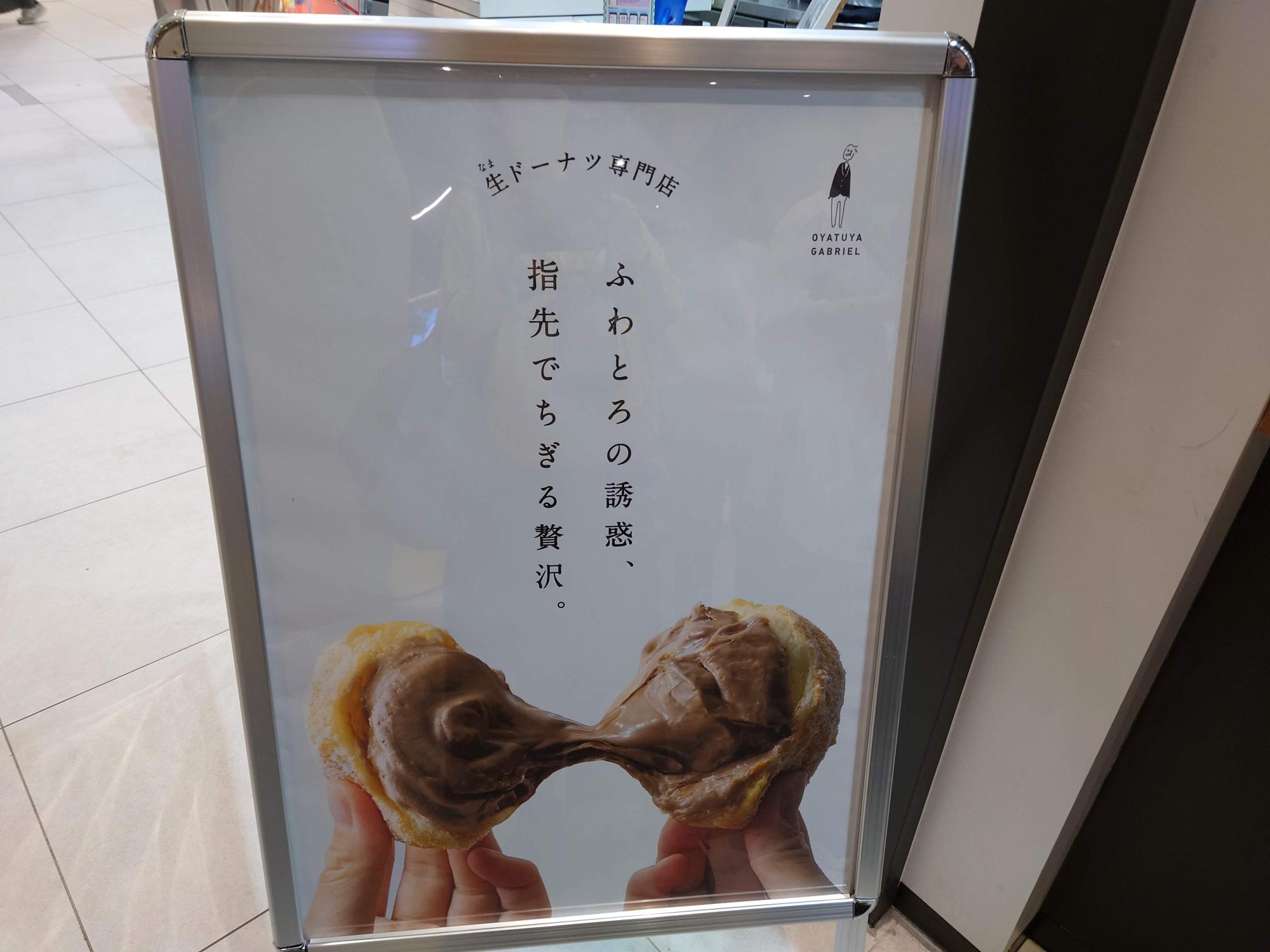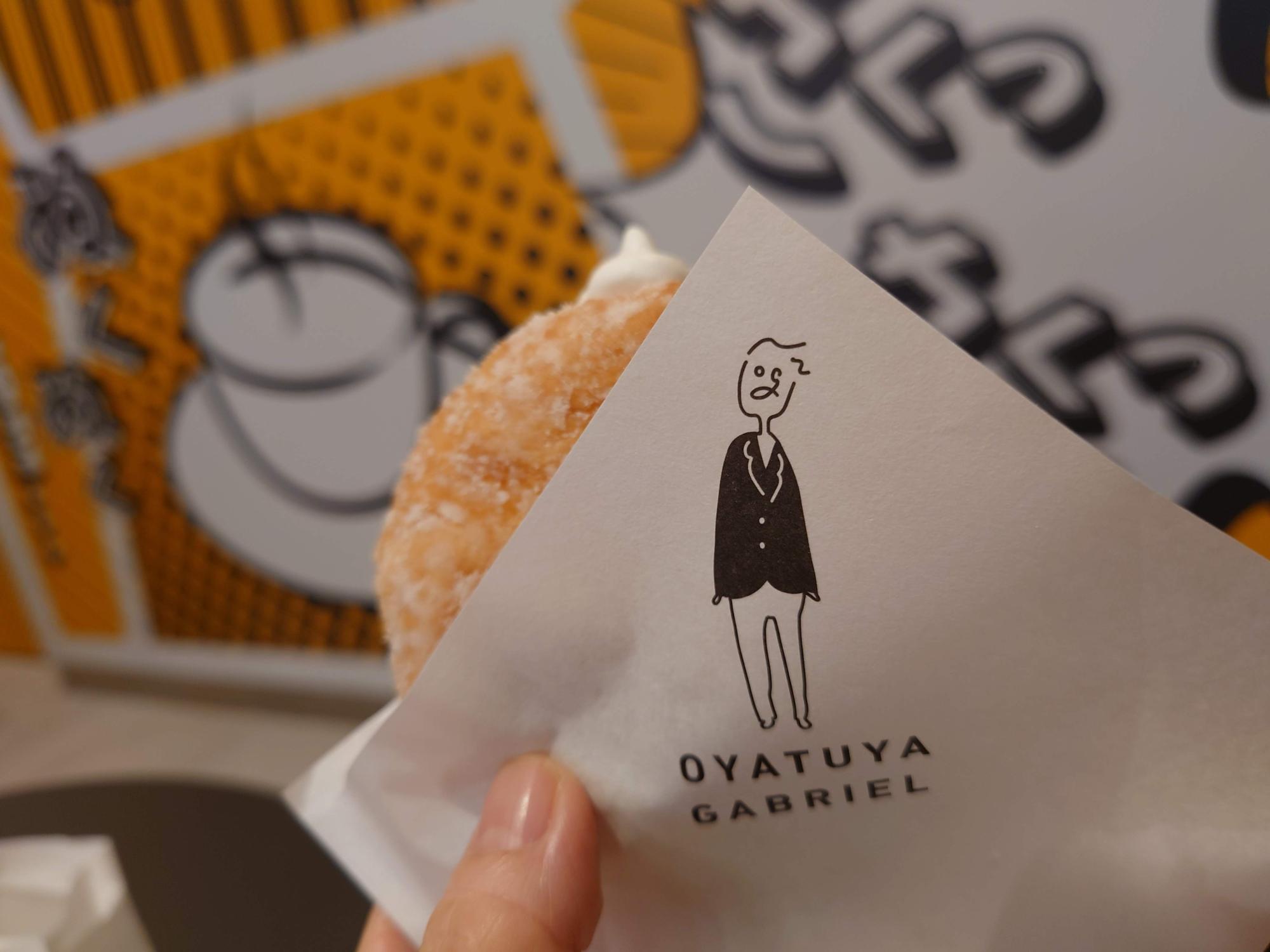 「OYATUYA GABRIEL」は、生ドーナツ専門店です。10月25日のオープン初日にお邪魔してみました。画像は加工していますが、長蛇の列ができていました。というのも、数量&時間限定ですが、好きなドーナツを1個100円で購入できるオープニングセールがあったからです。我々が着いたころにはすでにセールは終了していましたが、生ドーナツはいただきたかったのでそのまま並んで購入することにしました。