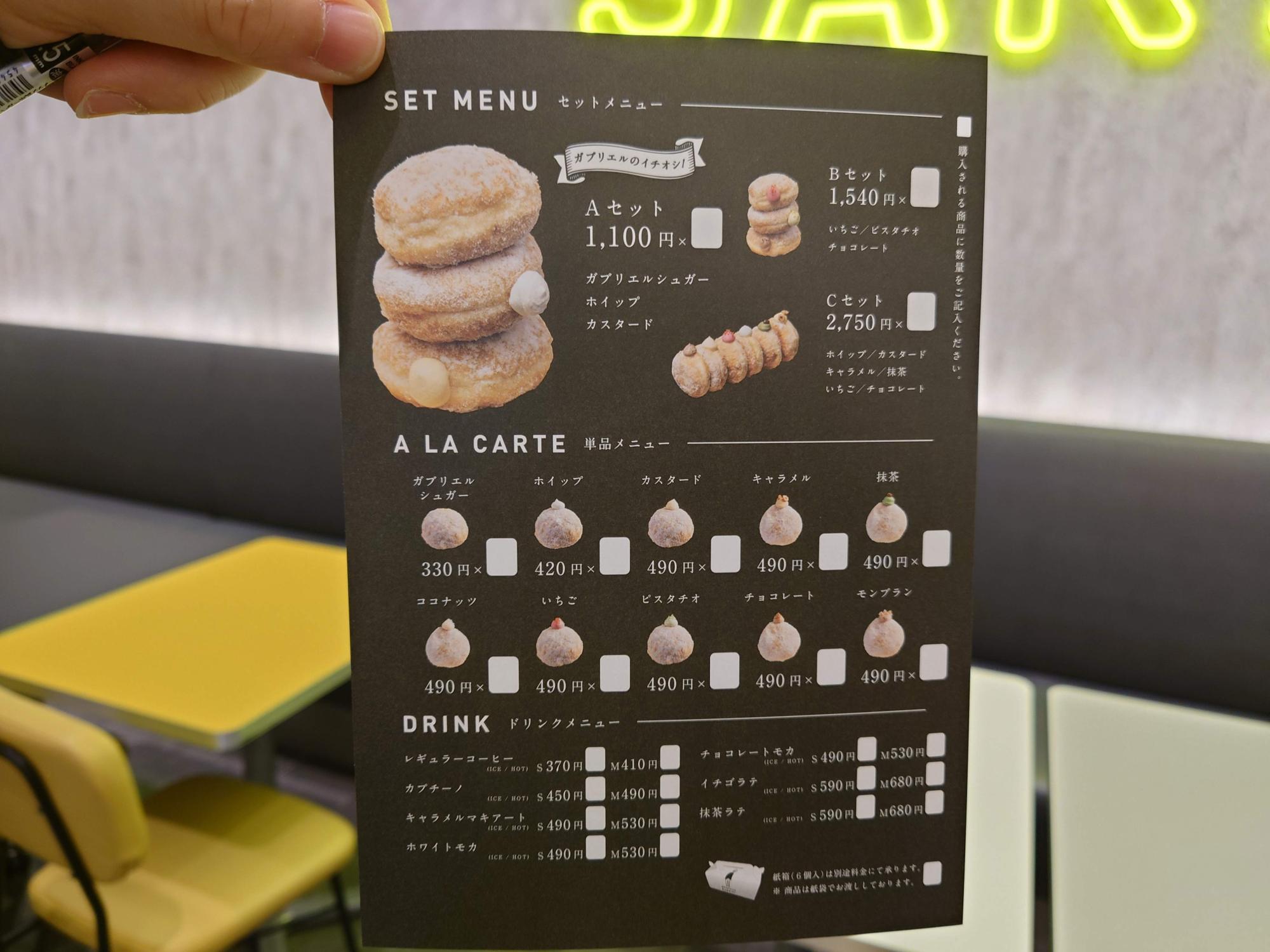 オーダーにはこのような用紙をもらい、四角い空欄に購入数を記入して、カウンターでお願いします。