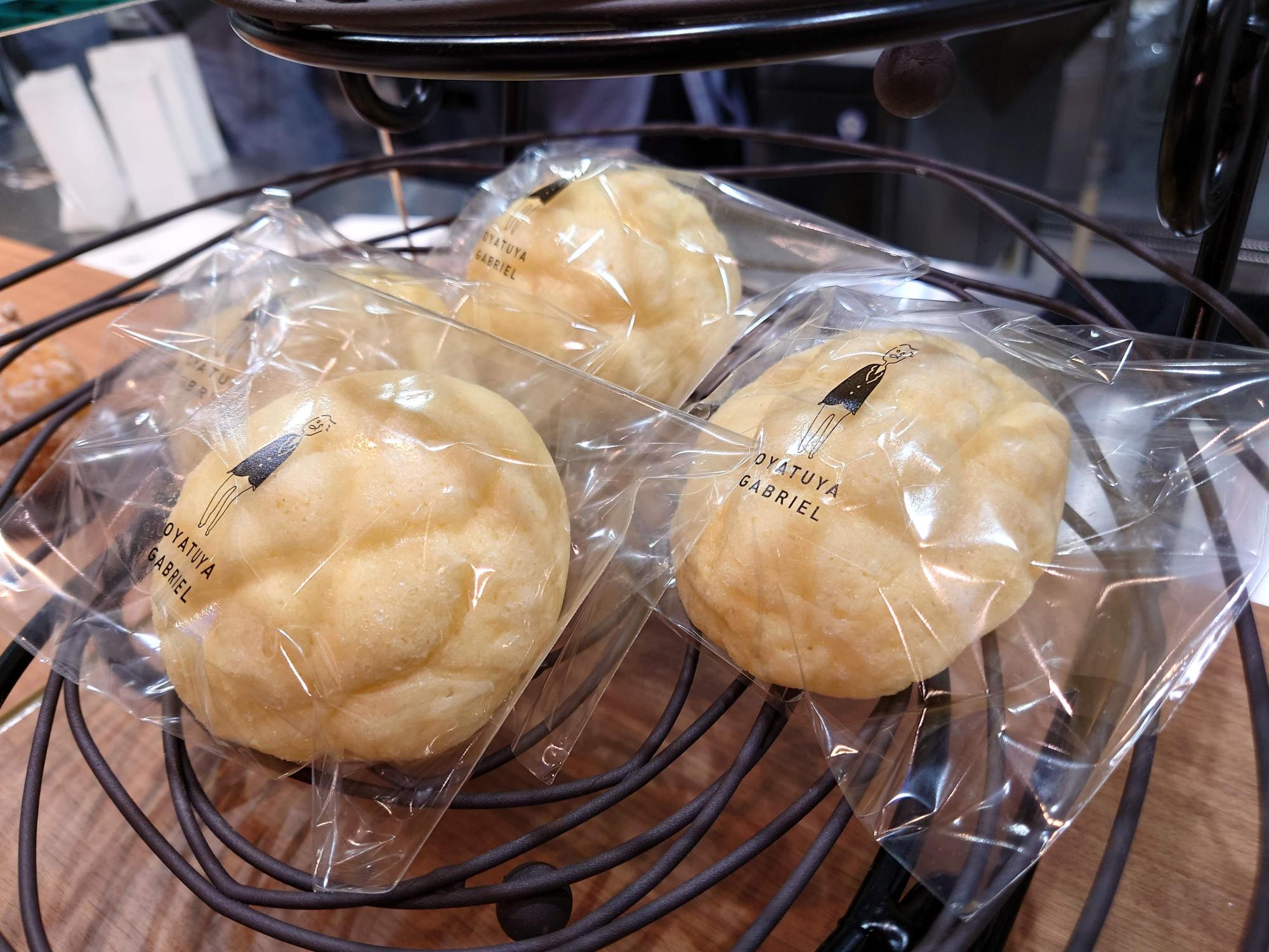 「OYATUYA GABRIEL」は生ドーナツ専門店ではありますが、他にもさまざまなお菓子が並んでいました。カウンターには、メロンパンも並んでいました。